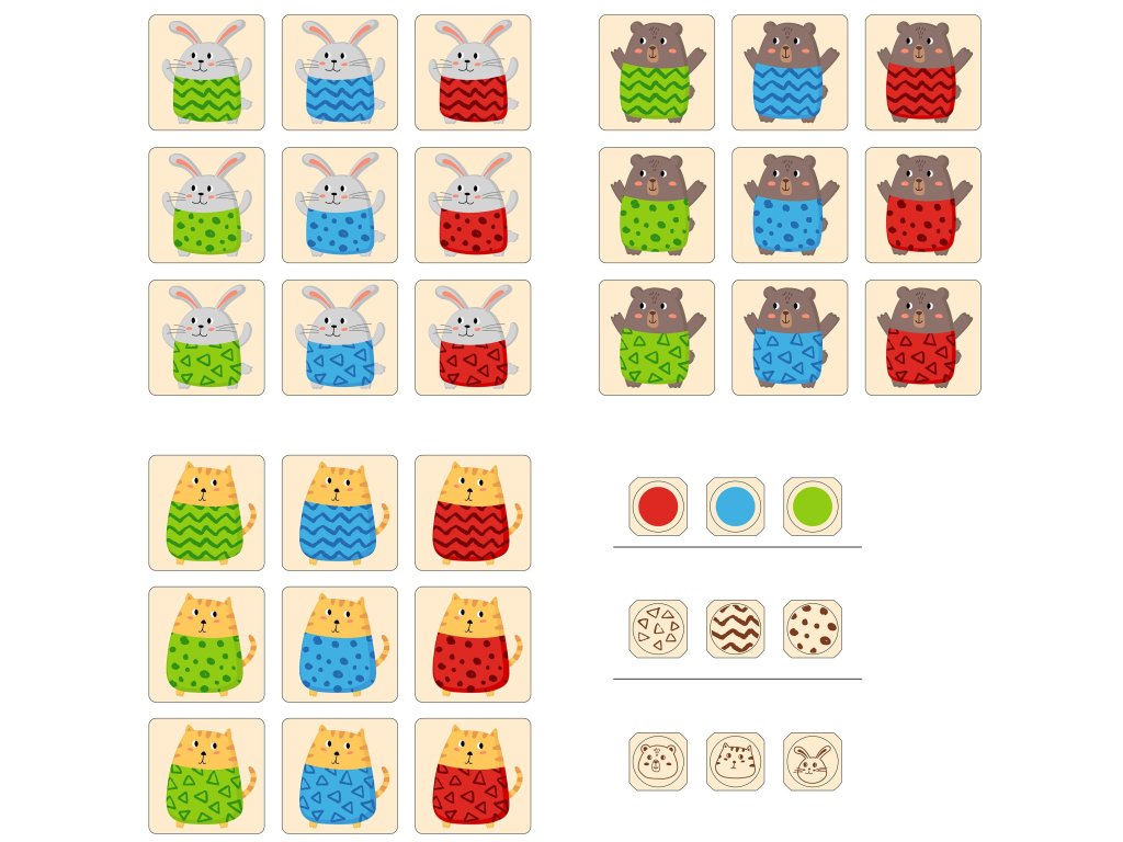 - - Hra rýchle priraďovanie zvierat podľa vzorov a farieb.