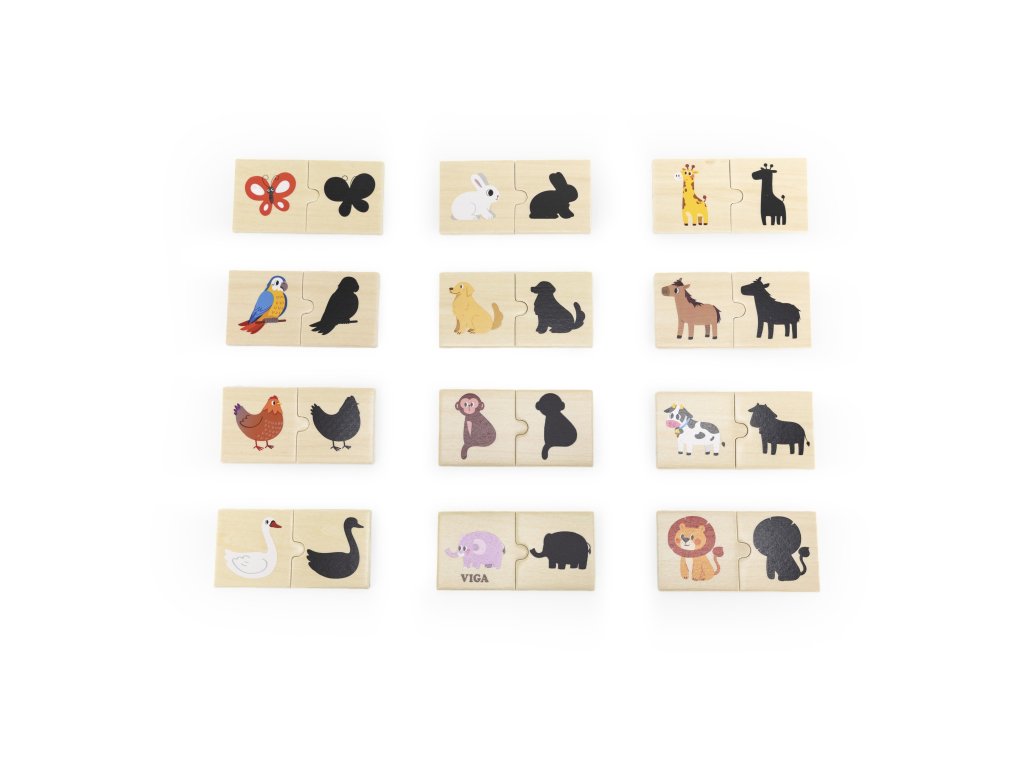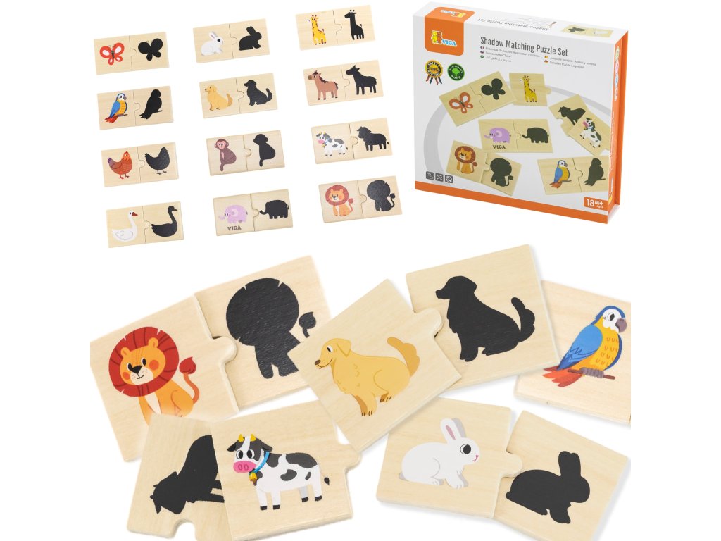 Sada puzzle "Match the Shadows" od značkyVIGA je dokonalou kombináciouhranie sa so vzdelávaním. Tieto logické hádanky sú klasické hlavolamy, ktoré potešia každé dieťa. Vďakakrásne, farebné prvky poskytujú nielen pohlcujúcu zábavu, ale ajpodpora vzdelávania v ranom veku prostredníctvom hry. Farebné postavičky na skladačkeupútať pozornosť detí, čo im pomáha spoznávať farby a objavovať svet okolo seba, ako aj rozvíjať nové slová, básničky a piesne. Táto drevená skladačka pomáha deťom naučiť sarozpoznať a rozlíšiť tiene zvieratá, hmyz a vtáky. Deti si môžu poskladať puzzle tak, že priradia zvieratá k ich tieňom na príslušných dielikoch. Je to skvelá hračka na učenie sa názvov zvierat, ich zvukov, ich potravy a miest, kde sa vyskytujú. S touto súpravou môžete rozvíjať vzťah s dieťaťom mnohými spôsobmi.