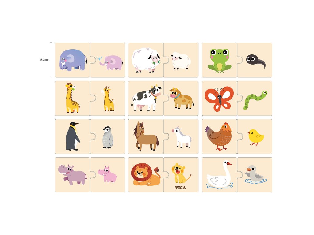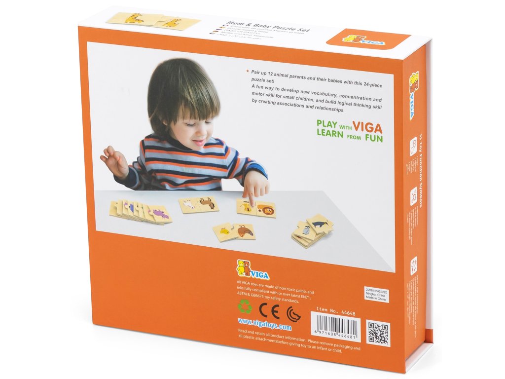 Drevené puzzle od značky VIGA vám umožní hrať do ktorej sa zmestí 12 dospelých zvierat a ich batoliat. Prostredníctvom hry deti si rozšíria slovnú zásobu, koncentrácia, motorické zručnosti & logické myslenie prostredníctvom prispôsobenie & objavovanie spojení.