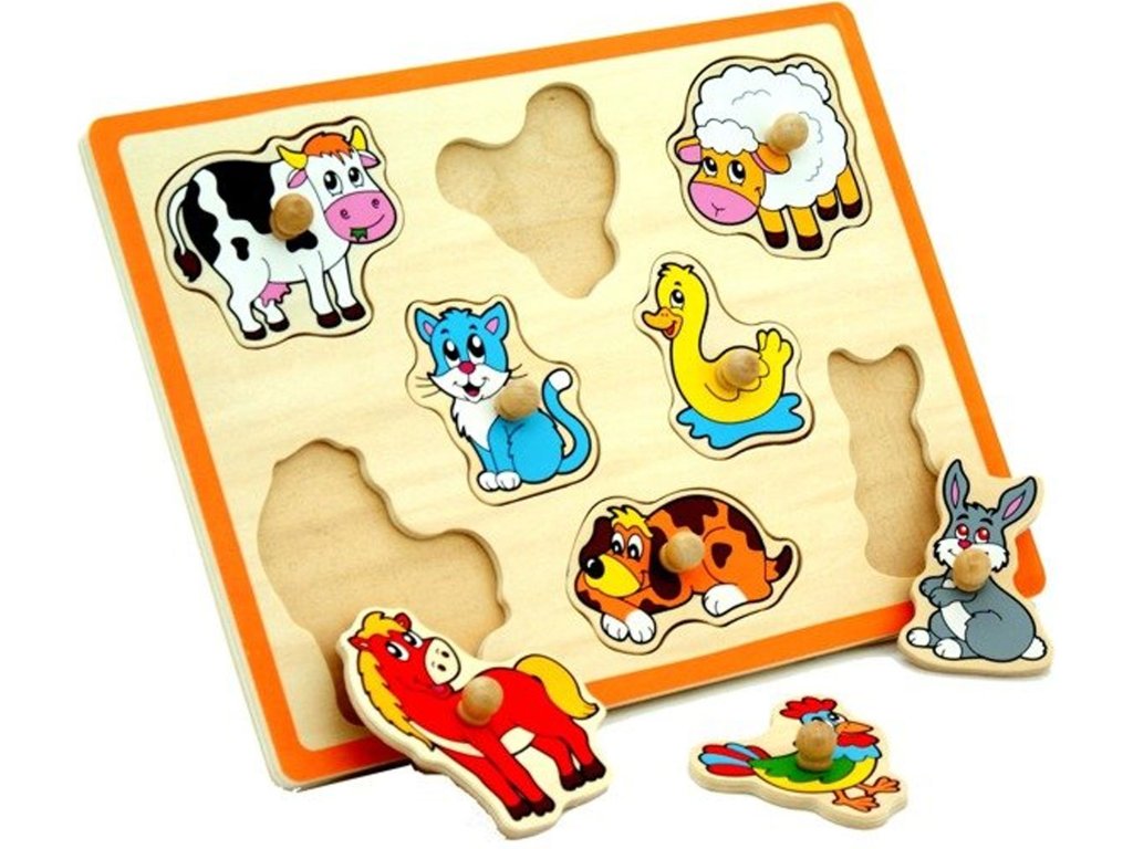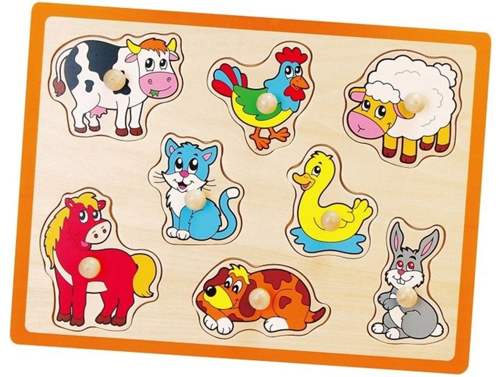 - - kolíkové puzzle Viga s motívom farmy sú skvelou hračkou pre deti vo vekuod 18 mesiacov veku,