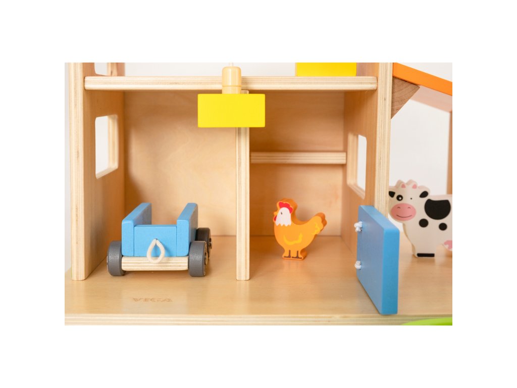 Drevená farma značkyVIGA je fascinujúca ponuka pre malých milovníkov vidieckeho života! Táto dobre vybavená stavba poskytne deťom hodiny tvorivej hry a umožní im spoznávať poľnohospodárstvo a starostlivosť o zvieratá. Vďaka rôznym prvkom môžu deti vytvárať realistické scenáre života na farme a zároveň rozvíjať predstavivosť a sociálne zručnosti.