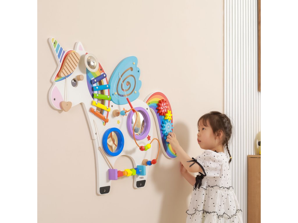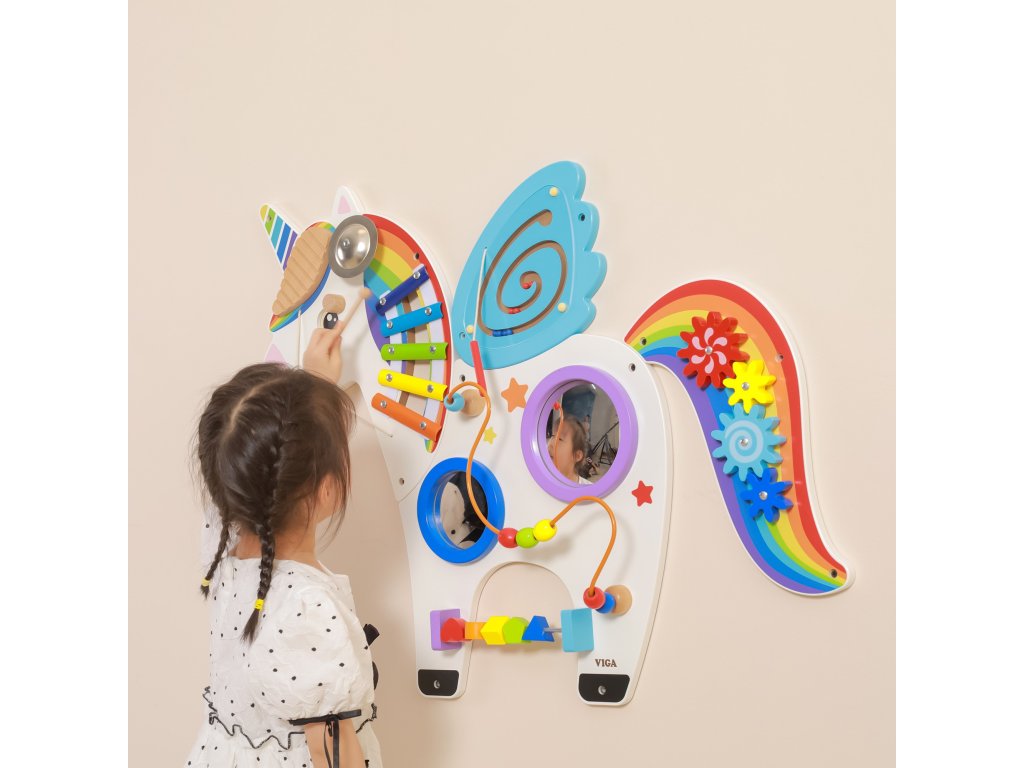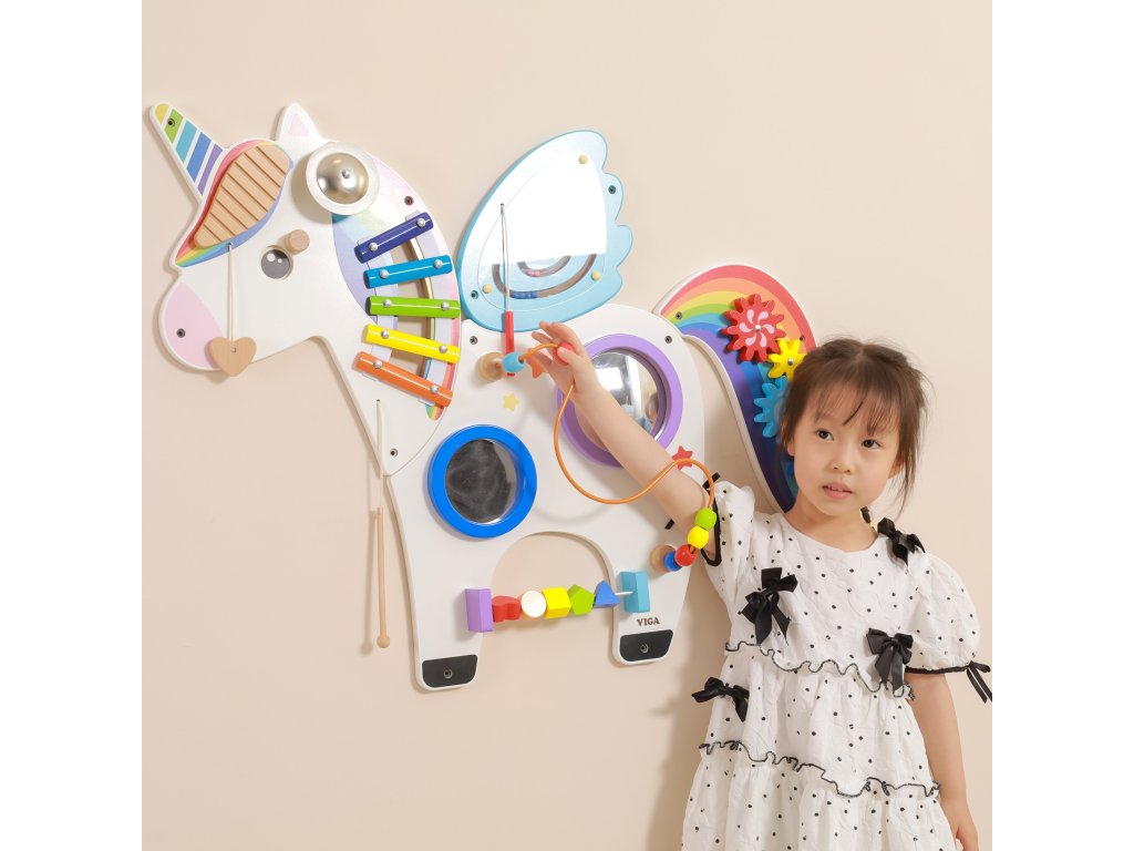 Táto magická senzorická tabuľa s rozkošnýmijednorožec od značkyHračky Viga, je skutočnou explóziou zábavy a učenia v jednom! Deti strávia hodiny objavovaním jeho interaktívne prvkyktoré podporujú dotýkanie, krútenie, posúvanie a počúvanie. Každá časť bola navrhnutá tak, abypodporovať rozvoj šikovnosť, koncentráciu a predstavivosť batoľaťa. Je to ideálna montessori hračka prematerské školy,izba detské alebo herňa - rozvíja zručnosti a nikdy nenudí! Je vyrobená z bezpečného certifikovaného dreva a predstavuje pevnú a trvalú investíciu do rozvoja vášho dieťaťa.