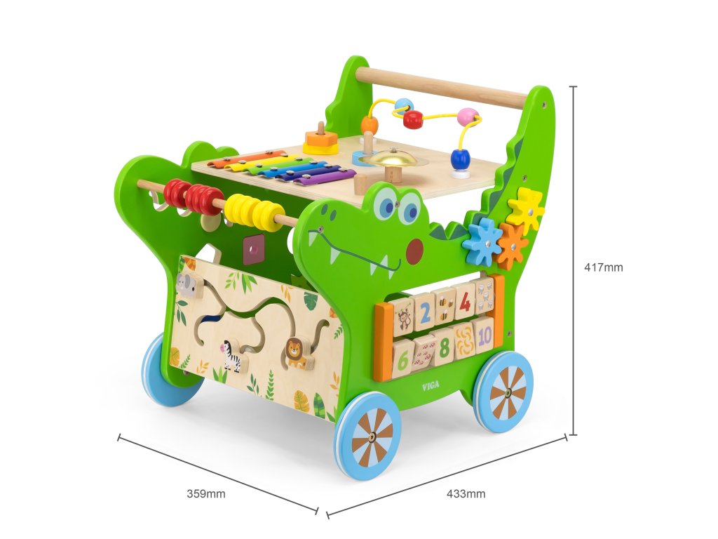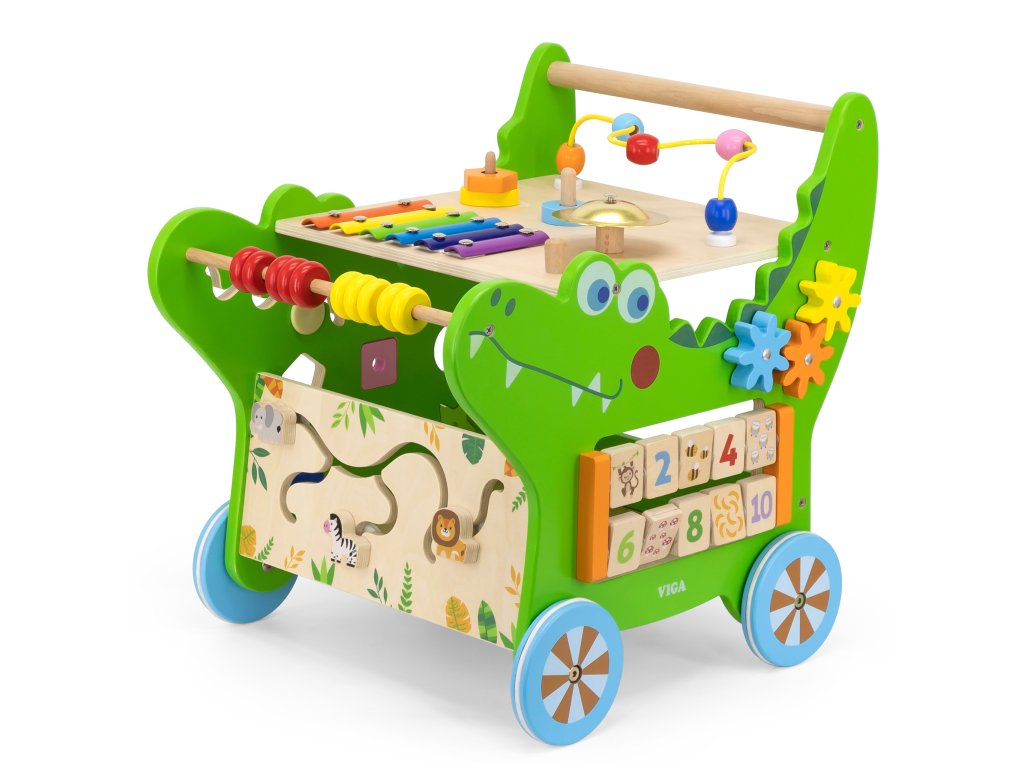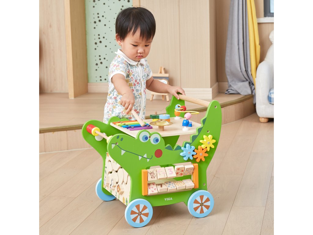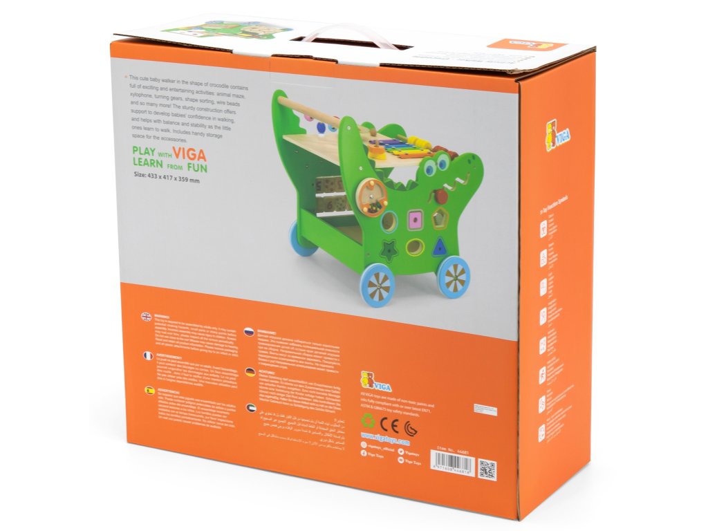 Drevený krokodíl Walker od značky VIGA obsahuje plnosť vzrušujúce aktivity pre batoľa: labyrint zvieratá, xylofón, ozubené kolesá, triedička tvarov, abakus a mnoho ďalších. Robustný stavebné ponuky stabilný podporaaby sa dieťatko mohlo sebavedome;spustenie učenie prechádzky a pomáha mu bilancia. Pomocou aktivít, ktoré sú súčasťou tohto chodítka, bude vaše dieťa schopné rozvíjať jeho kapacity manuál, koordinácia vizuálne-motor, logikaa tiež začne učenie tvary, farby & čísla. Má priestor na uloženie vašich obľúbených hračiek.