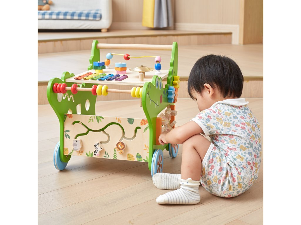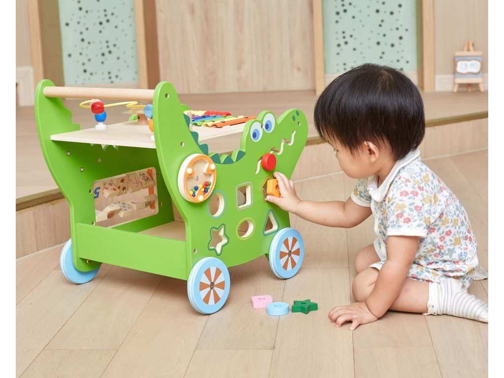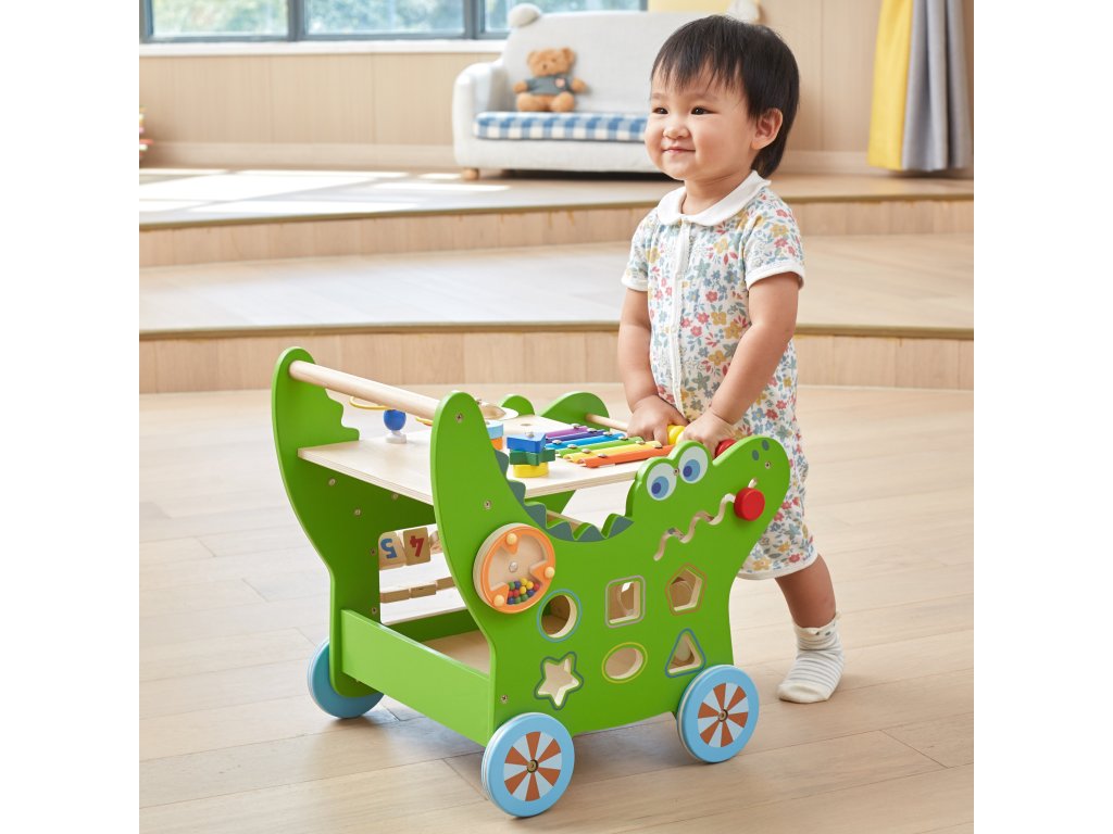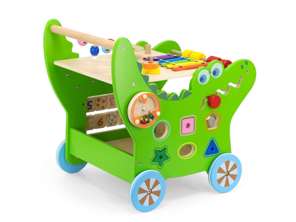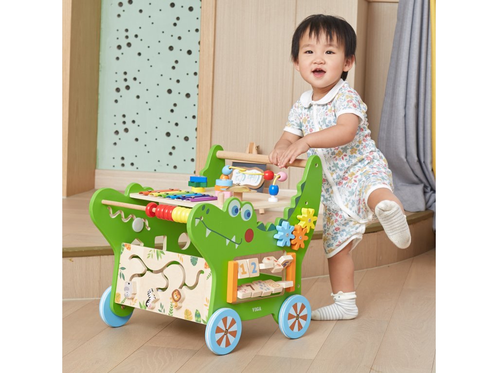 Drevený krokodíl Walker od značky VIGA obsahuje plnosť vzrušujúce aktivity pre batoľa: labyrint zvieratá, xylofón, ozubené kolesá, triedička tvarov, abakus a mnoho ďalších. Robustný stavebné ponuky stabilný podporaaby sa dieťatko mohlo sebavedome;spustenie učenie prechádzky a pomáha mu bilancia. Pomocou aktivít, ktoré sú súčasťou tohto chodítka, bude vaše dieťa schopné rozvíjať jeho kapacity manuál, koordinácia vizuálne-motor, logikaa tiež začne učenie tvary, farby & čísla. Má priestor na uloženie vašich obľúbených hračiek.