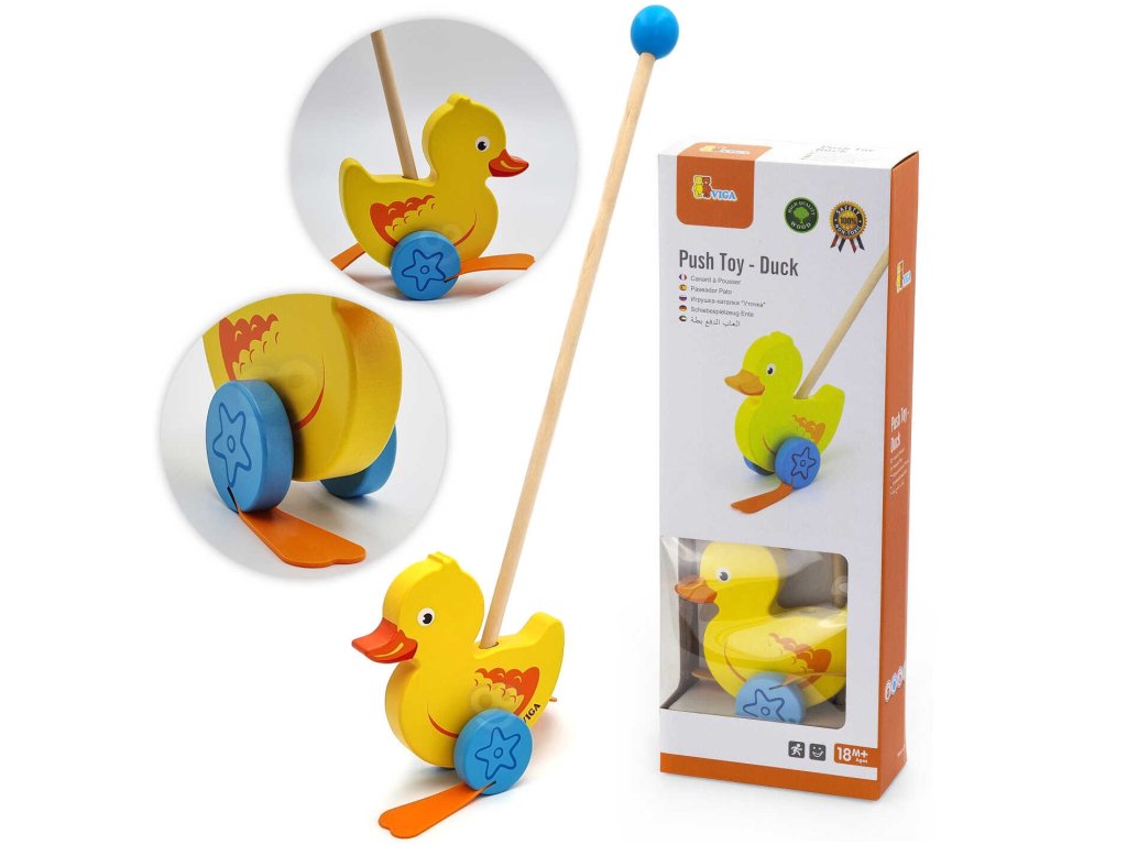 Kočík s kačičkou na paličke od spoločnostiViga je určený pre deti, ktoré sa práve učia robiť prvé kroky. Farebný kočík povzbudí dieťatko k prvým krokom a bude mu vďačným spoločníkom na prechádzkach doma, v záhrade aj v parku.