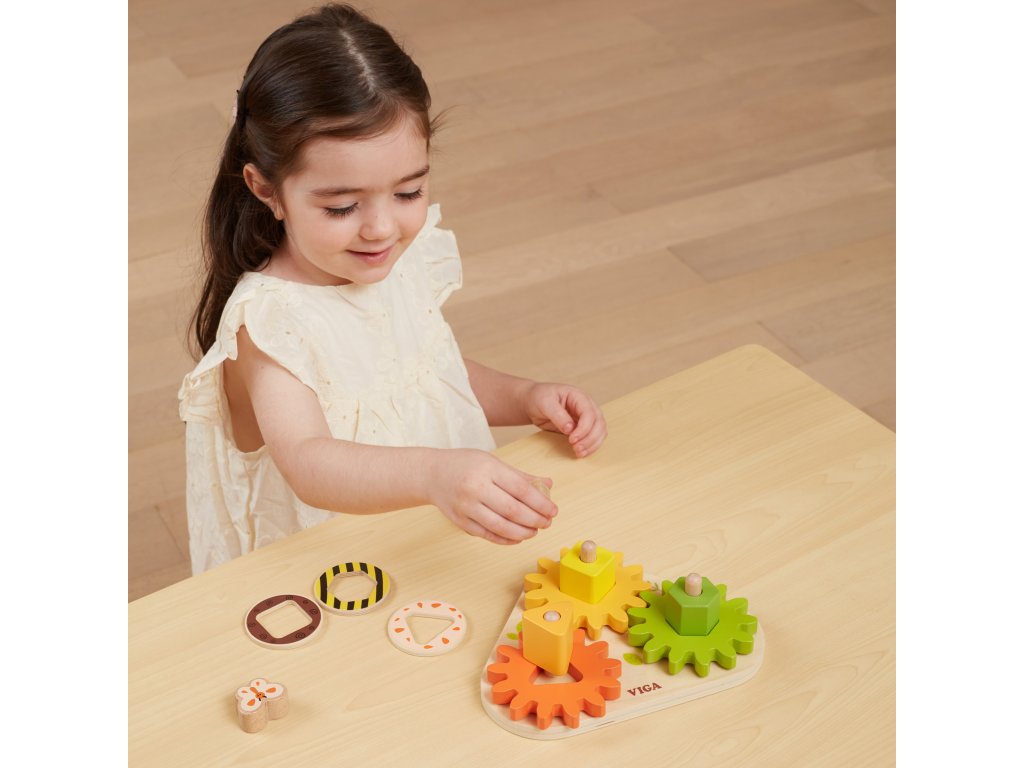 VIGA Drevený triedič ozubených koliesok "Tvary a mechanizmy"