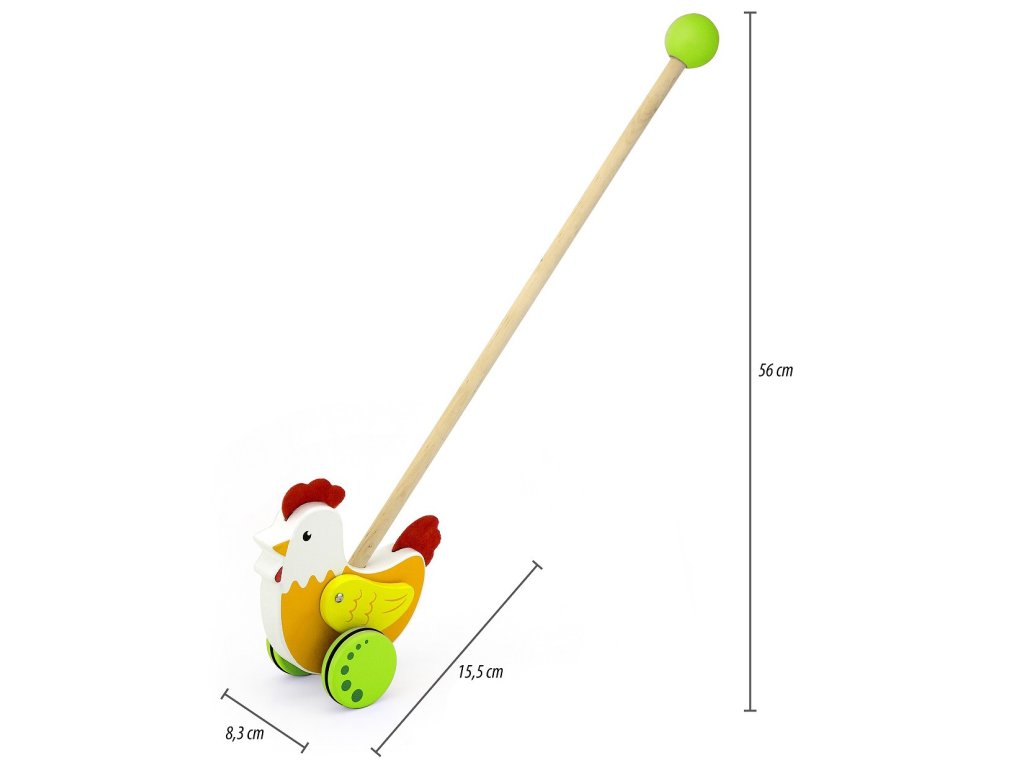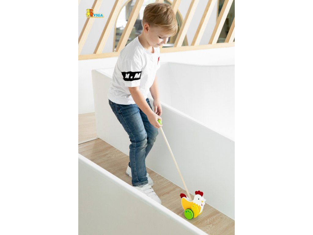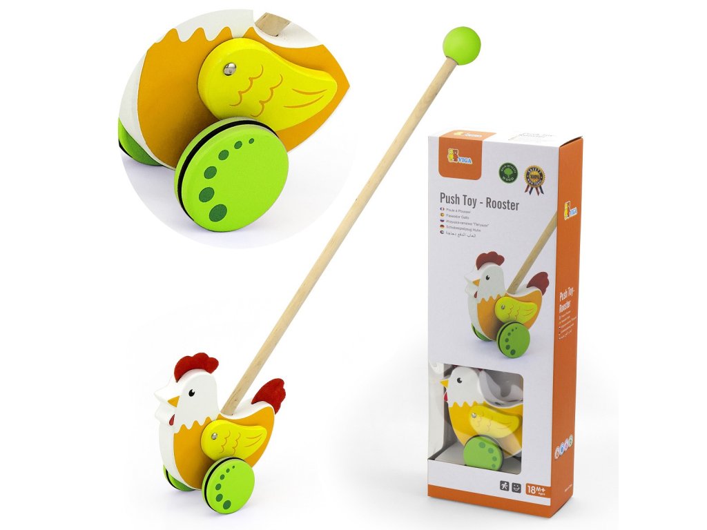 Kočík s kohútikom na palici od spoločnosti Viga je určený pre deti, ktoré sa práve učia robiť svoje prvé kroky. Farebné odrážadlo určite povzbudí dieťatko v zdokonaľovaní techniky chôdze a spríjemní každú rodinnú prechádzku.