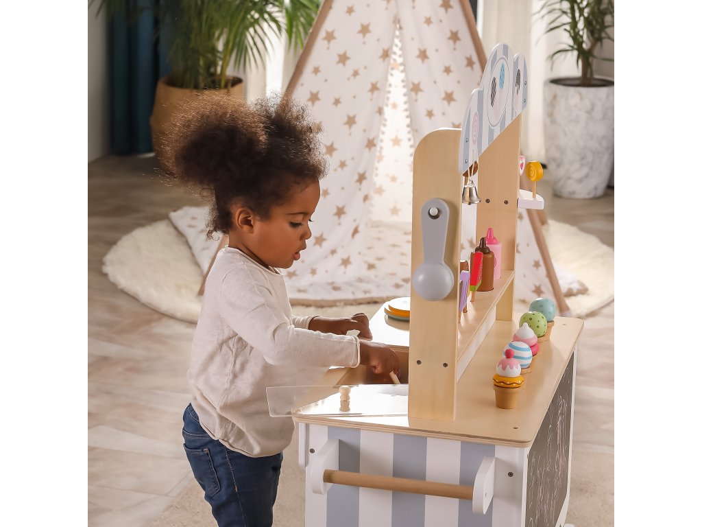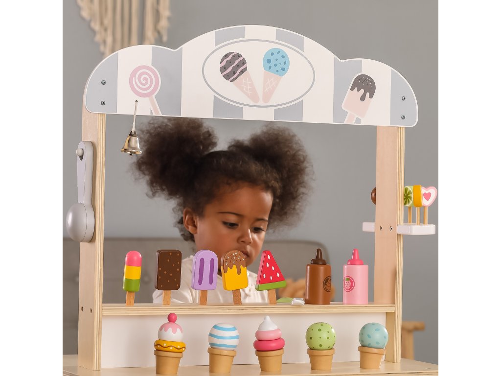 Obchod, Cukráreň, Zmrzlináreň 3v1 je ideálnym darčekom pre malých cukrárov. Sada je ideálna pre dieťa, ktoré chce úloha maloobchodníci alebo cukráreň. Vďaka tejto hračke sa vaše dieťa bude cítiť ako profesionálny predajca sladkosti. Hračka má mnoho drobnejších doplnkov, ako napr lízanky, zmrzlina, vafle alebo polevy. Okrem toho má obchod tabuľu, na ktorú si dieťa môže namaľovať alebo napísať ceny alebo dnešné menu. V obchode sa nachádza polička, kde si môže schovať rôzne veci. Celá je vymaľovaná s netoxickými farbami w jemné farby upútanie pozornosti dieťaťa.