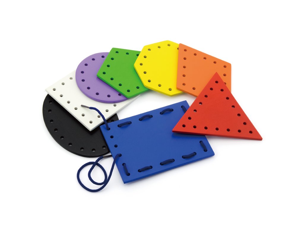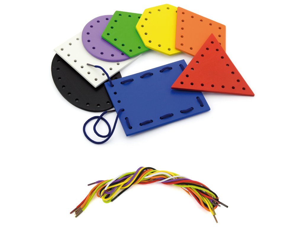 - - úlohou dieťaťa je priradiť farby a navliecť šnúrku do zodpovedajúceho tvaru,
