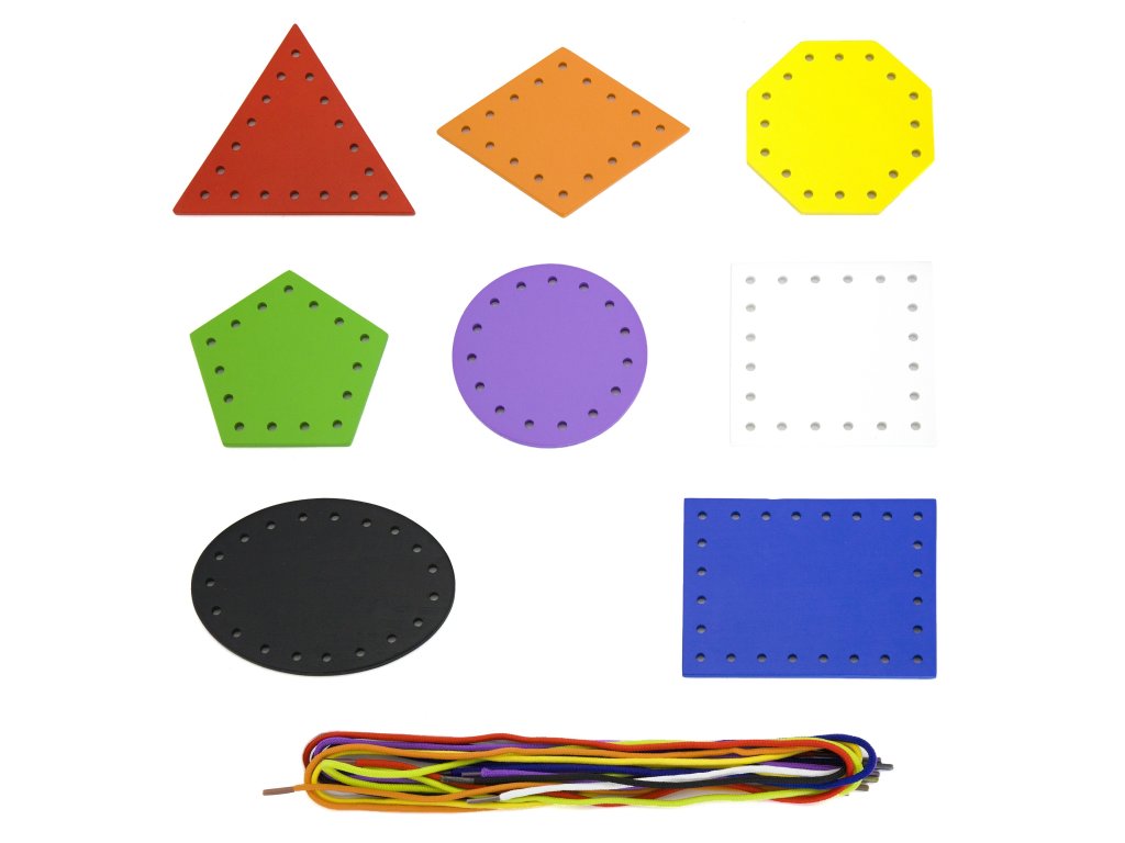 - - súprava obsahuje 8 rôznych tvarov a 8 rôznych farebných strúnna navliekanie na výrezy geometrické tvary,