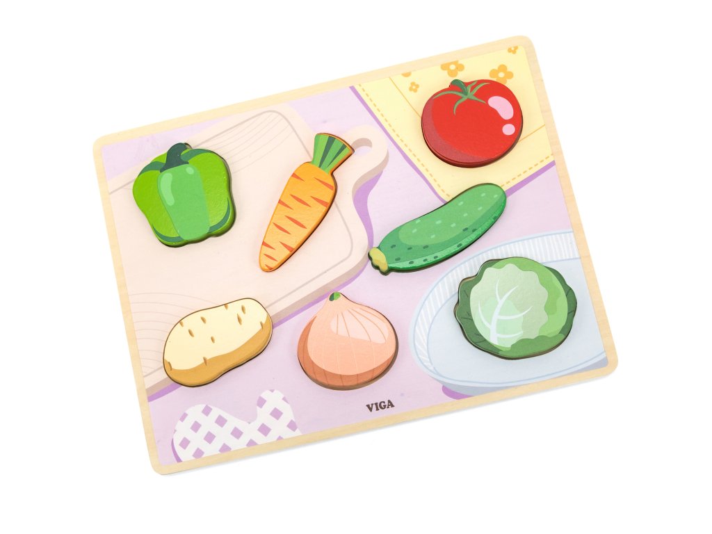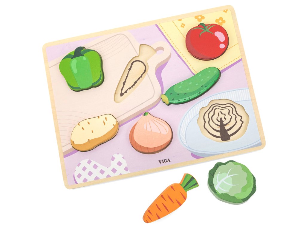 Drevené puzzle od značkyVIGA so zeleninovou tematikou. Sada obsahuje farebnú tabuľu a 7 dielikov. Zábavnéje zhodovať sa zeleninové dlaždice na príslušné miestana farebné základňa s výkresmi chýbajúcich prvkov, aby sa ľahšie našli. Takáto hra pomôžerozvíjať presnosť pohybov rúk, a zlepšenie koordinácie oko-ruka, ako aj osviežte si pamäť,logické myslenie a koncentrácia. Vďaka hrúbke dielikov možno puzzle použiť aj na iné hry ako figúrky.
