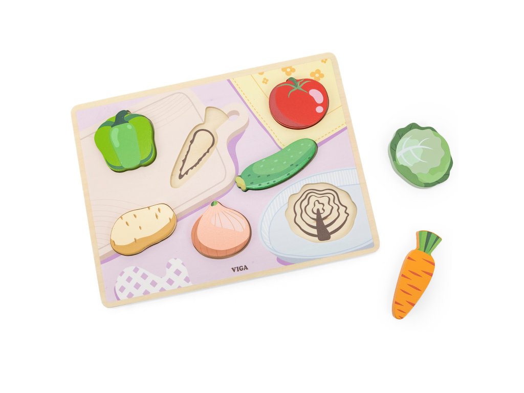 VIGA Montessori drevené puzzle 2v1 Figúrky Zelenina