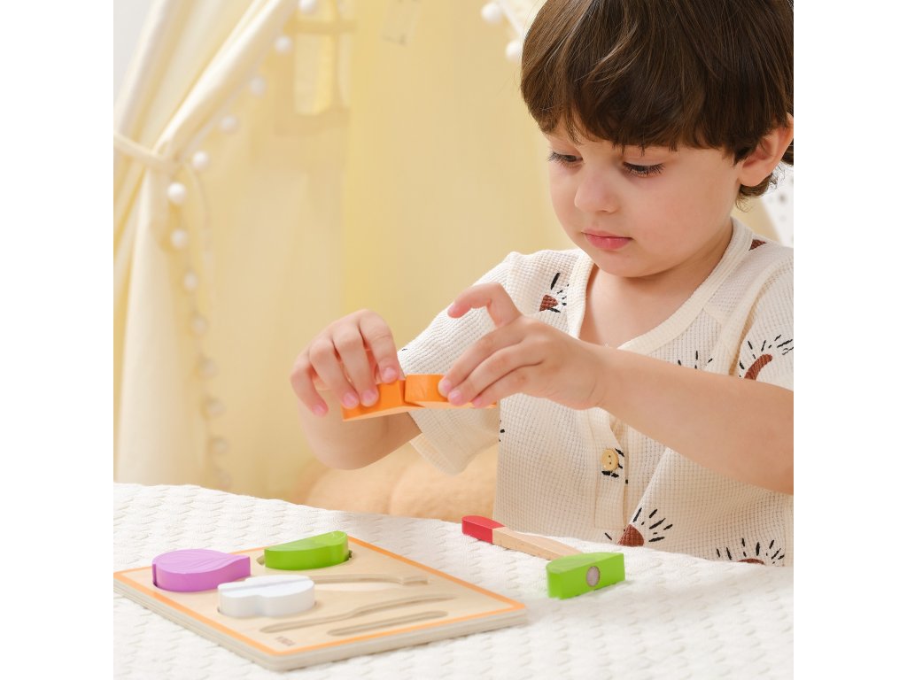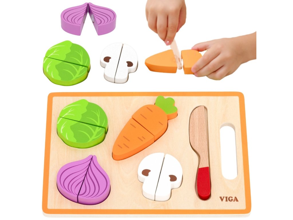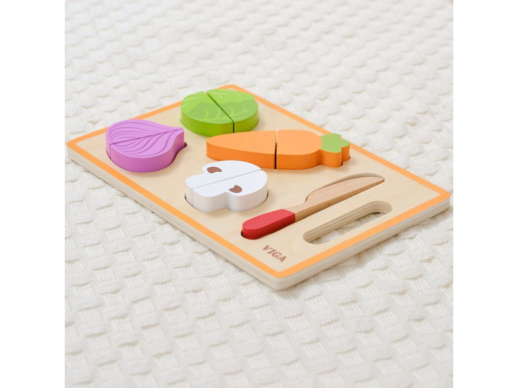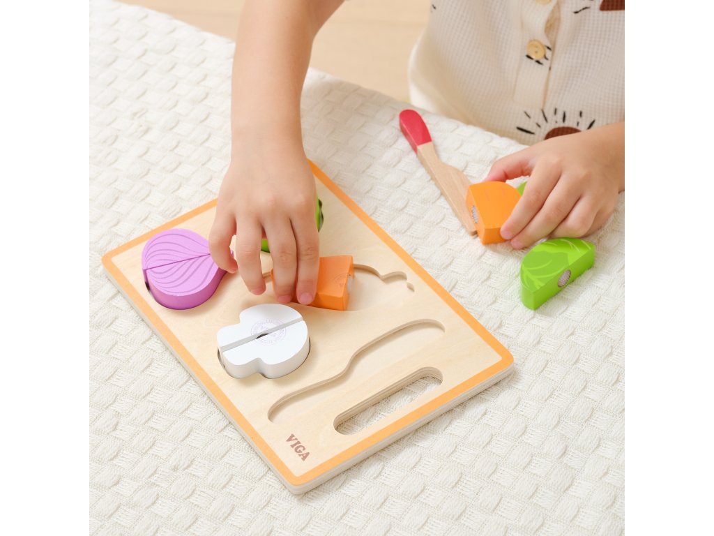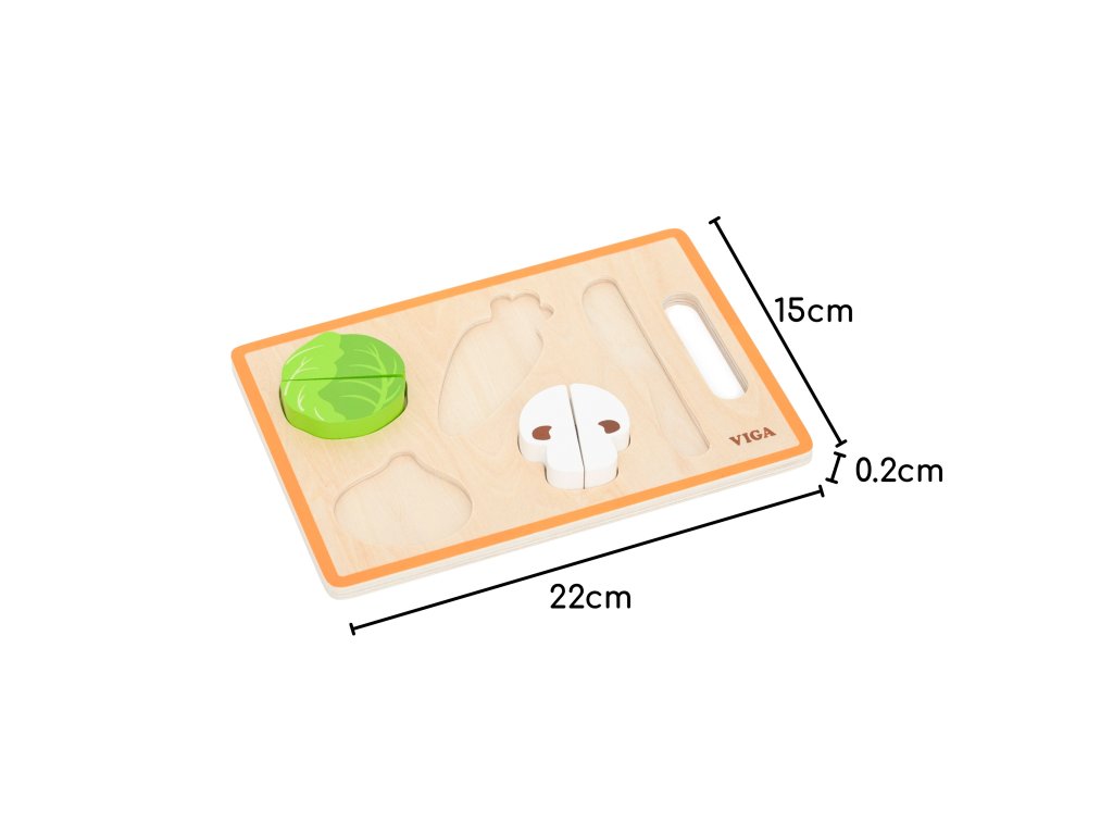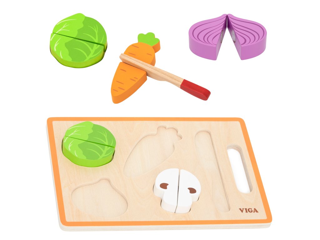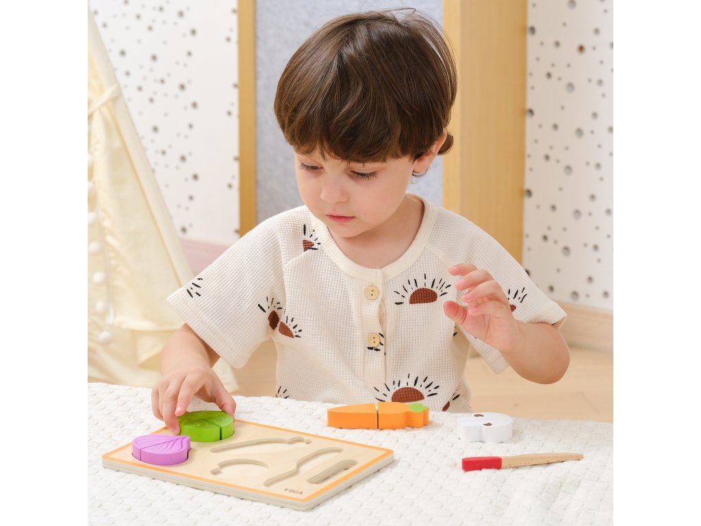 VIGA Montessori drevené vzdelávacie puzzle Zelenina na krájanie