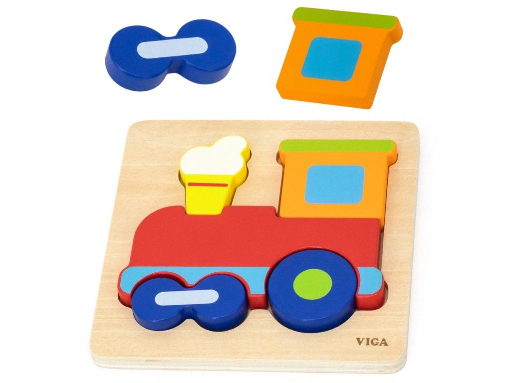 VIGA Montessori vzdelávací drevený puzzle vlak
