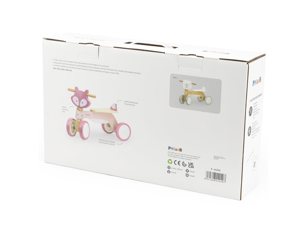 Drevený jazdec PolarB Fox Rider je krásna hračka od spoločnostiVIGA. Je to ideálny prostriedok na rozvoj svalovej sily a motorickej koordinácie vášho dieťaťa počas hry. Vozítko v tvare líšky pastelových farieb povzbudí vaše batoľa k fyzickej aktivite a objavovaniu sveta. Farebné vozidlo je fantastická hračka, ktorá umožní vášmu dieťatku spokojne sa hrať celé hodiny.