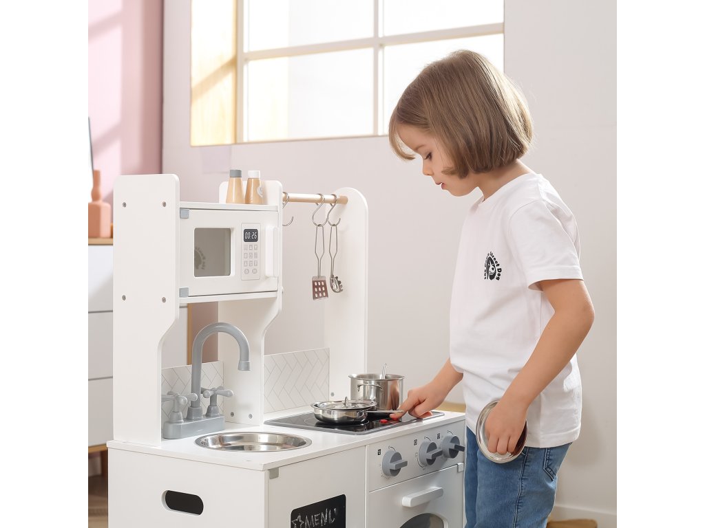Skvelá detská kuchynka na hranie, ktorá umožňuje deťom variť a pripravovať chutné jedlá pre rodinu alebo priateľov. Naučiť sa používať kuchynské náradie počas hry,kreatívne myslenie idetská predstavivosť môže byť dokonale stimulovaný.