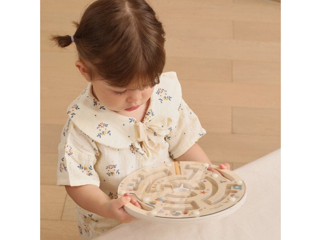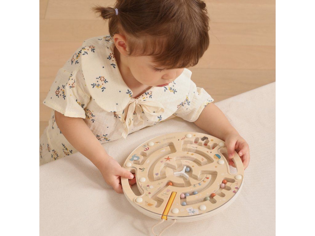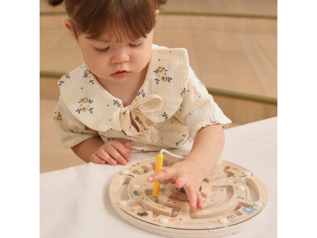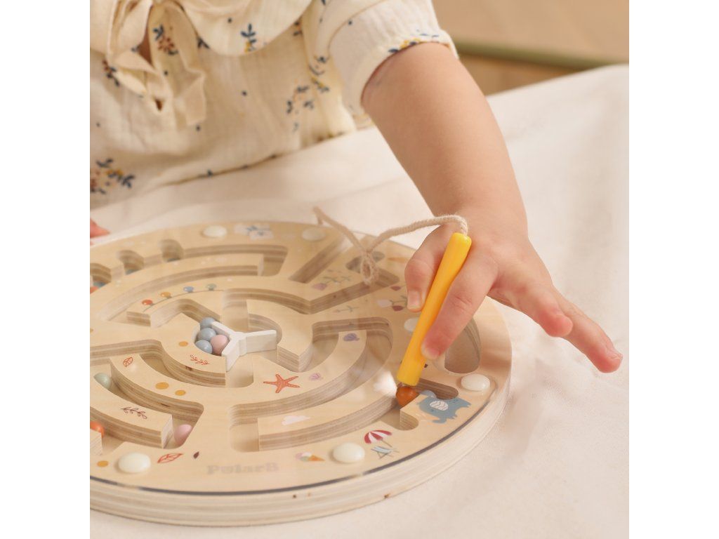 Magnetické bludisko od značkyVIGA Je vyrobená z masívneho dreva a zdobená pôvabnými ilustráciami znázorňujúcimi 4 ročné obdobia a poskytuje nielen skvelú zábavu, ale podporuje aj rozvoj manuálnych zručností a logického myslenia. Vďaka magnetickému stylusu môže dieťa pohybovať farebnými guľôčkami v bludisku, čím si precvičuje koordináciu ruka-oko.