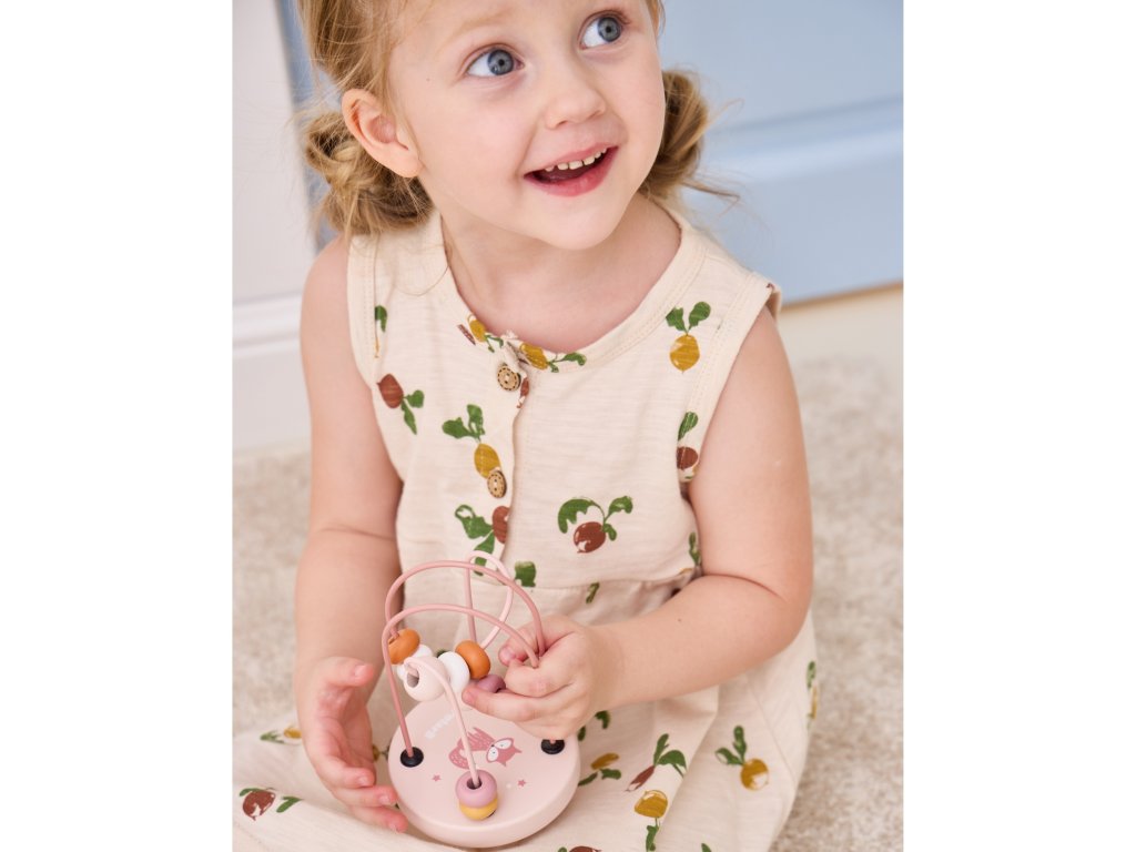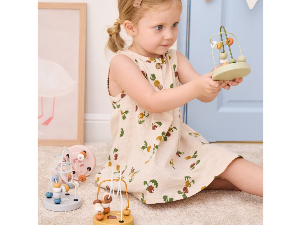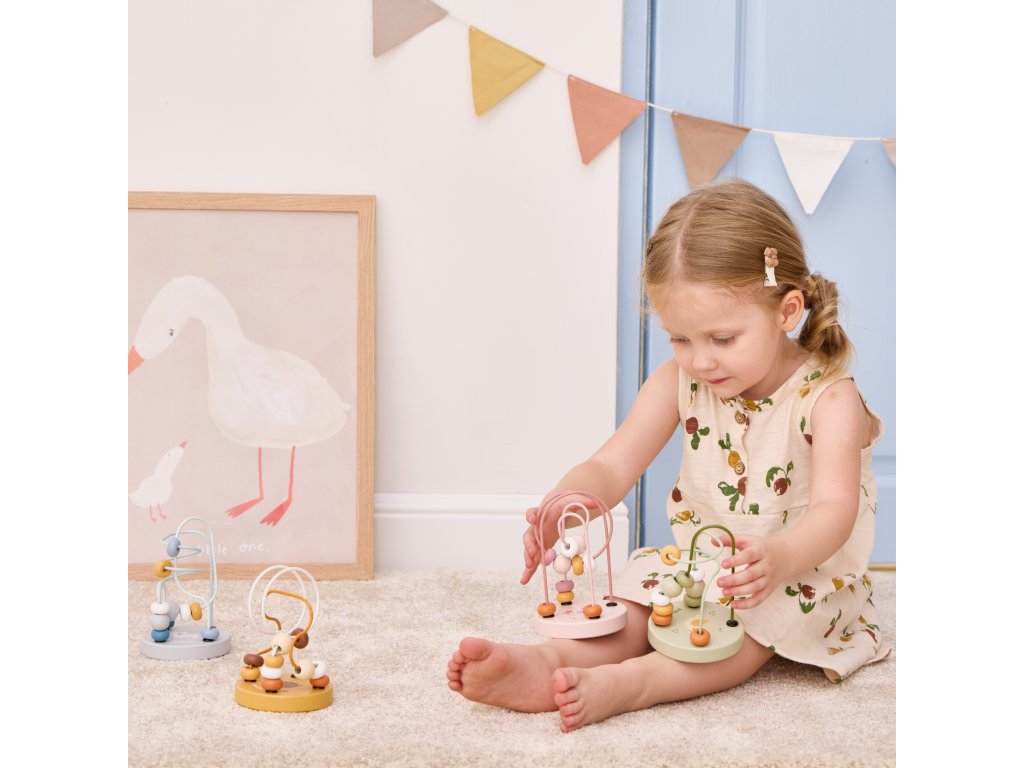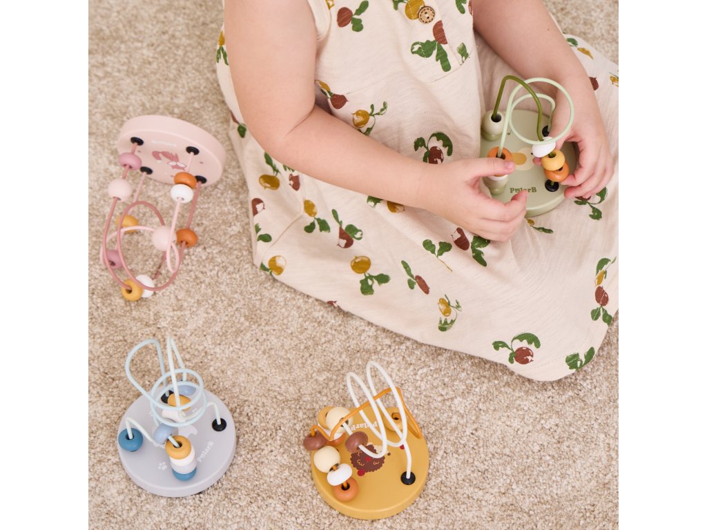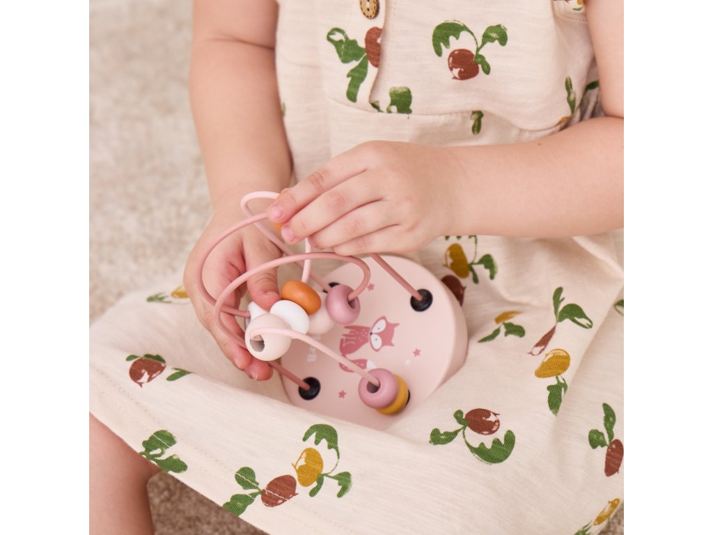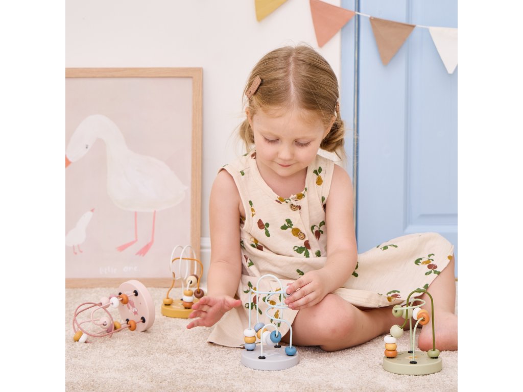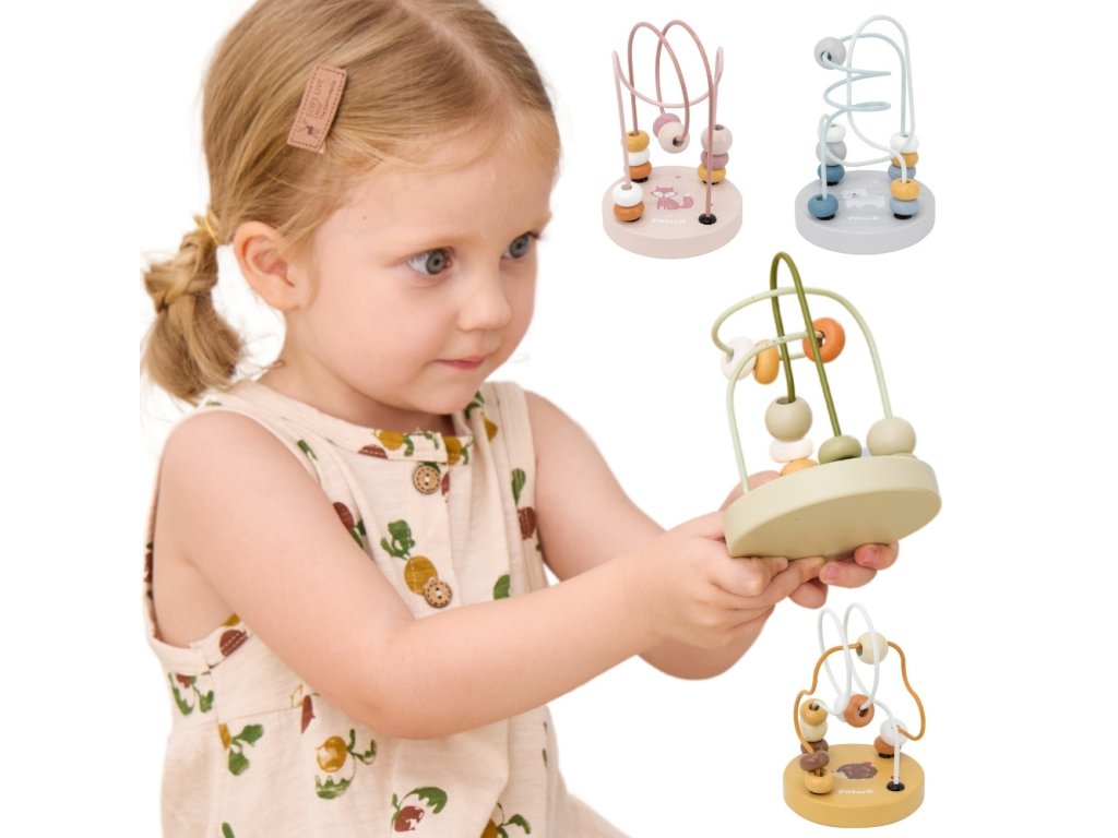 Drevená motorová slučka je skvelýzmyslová hračka, ktorá umožňuje dieťaťu trénovaťzručnosť rúk. Pri prepletaní korálikov cez zakrivené trubice musí dieťa vykonávať správne pohyby, aby boli akcie úspešné. Dieťa sa tak učí, aké pohyby má vykonávať, a zároveň si cvičí zručnosť a presnosť. Na drevenej základni jefarebný obrázokku ktorým sú pripojenéfarebné rúrky. Na rúrkach je navlečených 10 farebných korálikov v dvoch tvaroch, ktoré určiteprilákať pozornosť naše deti.