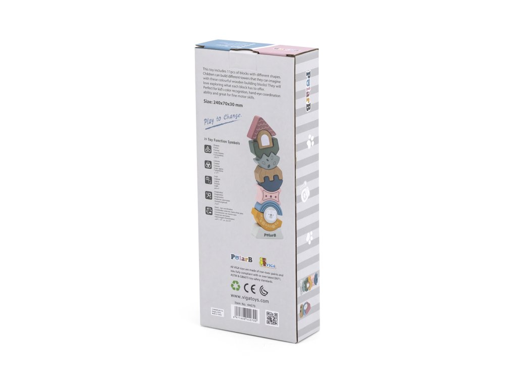 Puzzle veža od spoločnosti Viga je klasická hračka pre najmenších, ktorá vášmu dieťaťu poskytne radostnú, zaujímavú a kreatívnu hru.