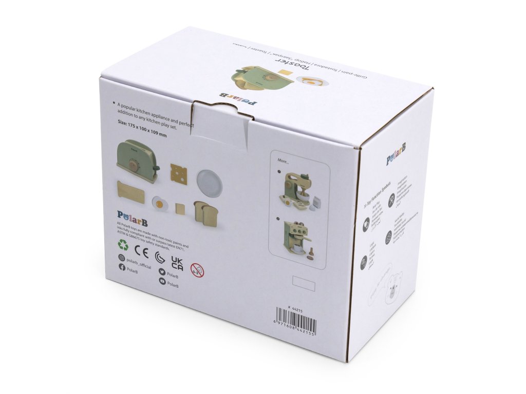 Objavte zábavu, ktorá chutí akoskutočný toast! Drevené,zelený hriankovač od značkyViga zo sériePolarB nie je len hračka - je to malá kuchynka plná zábavy a kreativity. Vaše dieťa bude otáčať ovládačmi a"slúžiť" svoje vlastné toastové diela a zároveň sa učiť zručnosti a predstavivosti. Vďaka realistickým zvukom a praskajúcim plátkom sa každé jedlo stane vzrušujúcim dobrodružstvom! Ideálny darček pre batoľatá, ktoré milujú zábavu a učenie v jednom.