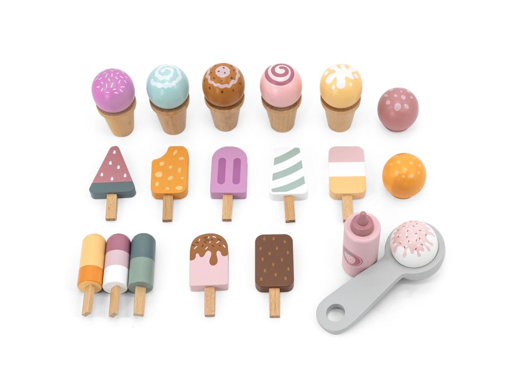 - - okrem vozíka súprava obsahujevafle, kopčeky zmrzliny, zmrzlinové tyčinky a magnetická lyžica