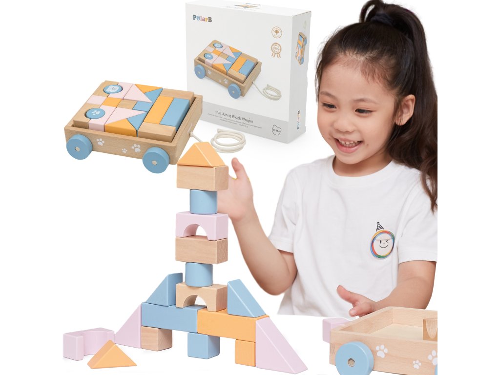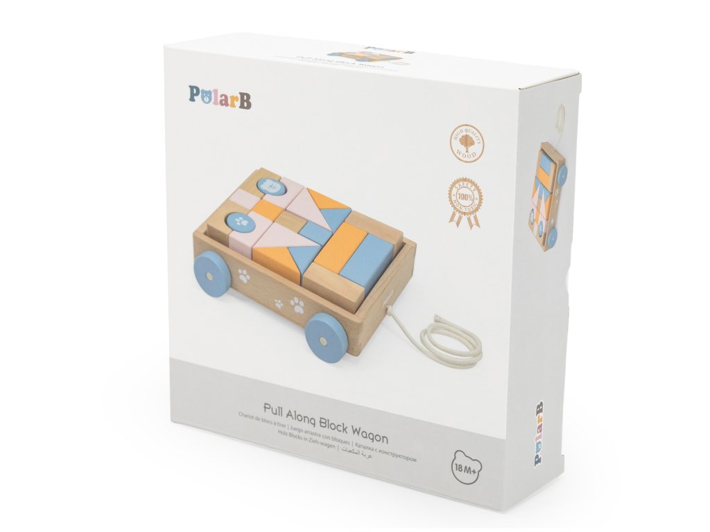 VIGA PolarB Drevený vozík na ťahanie + bloky 21 ks