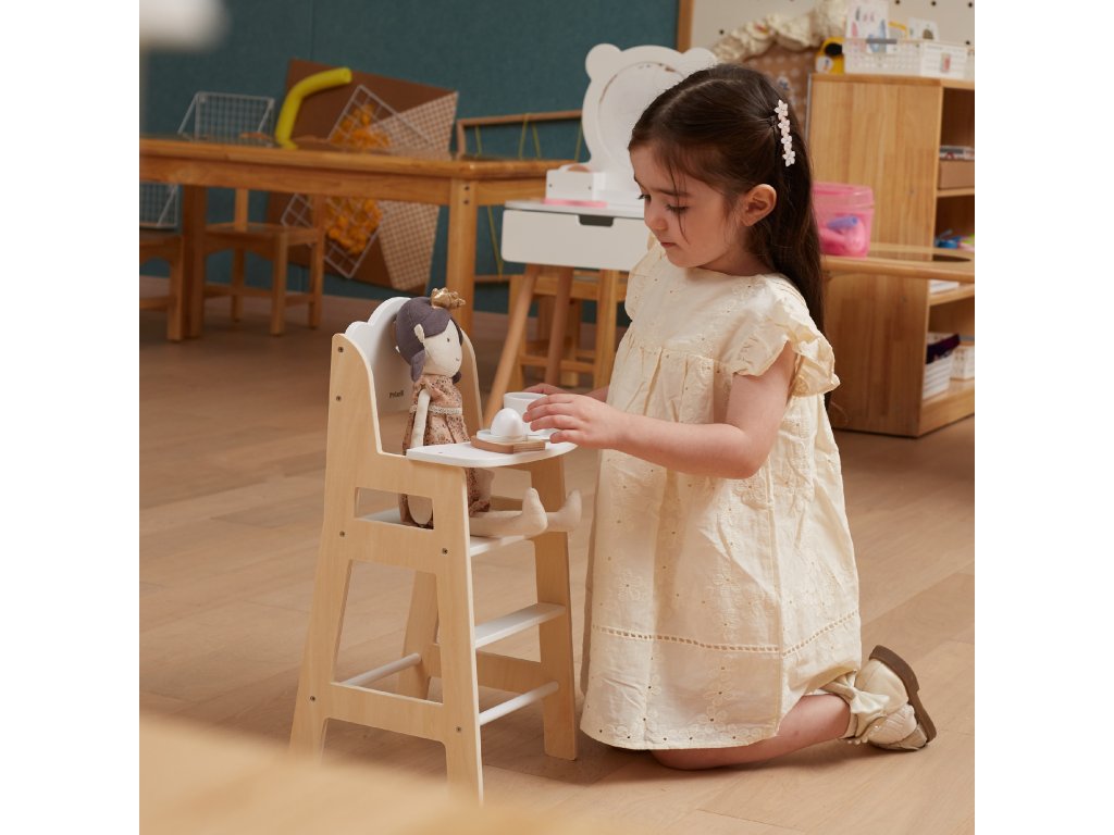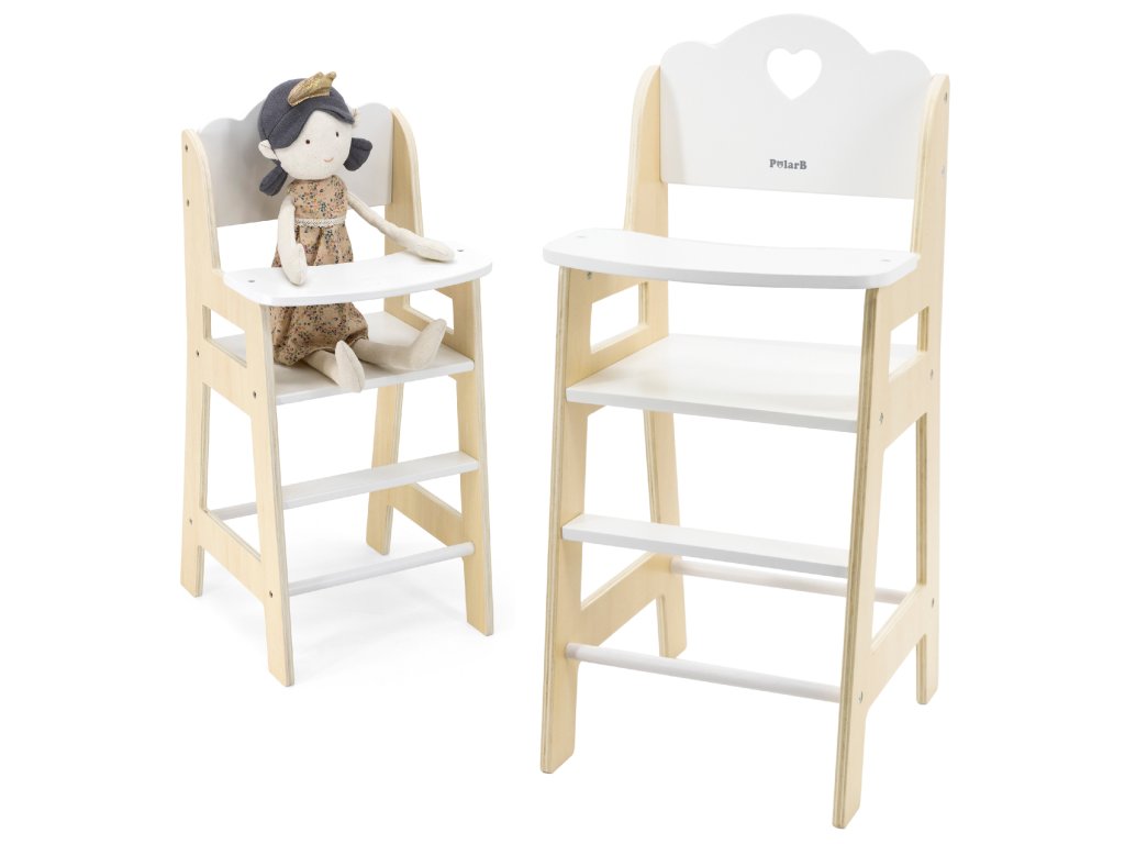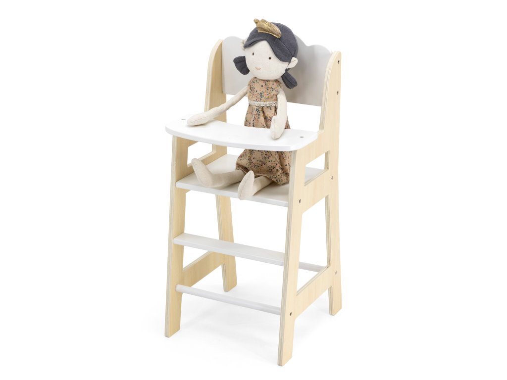 VIGA PolarB Stolička na kŕmenie bábiky biela drevená