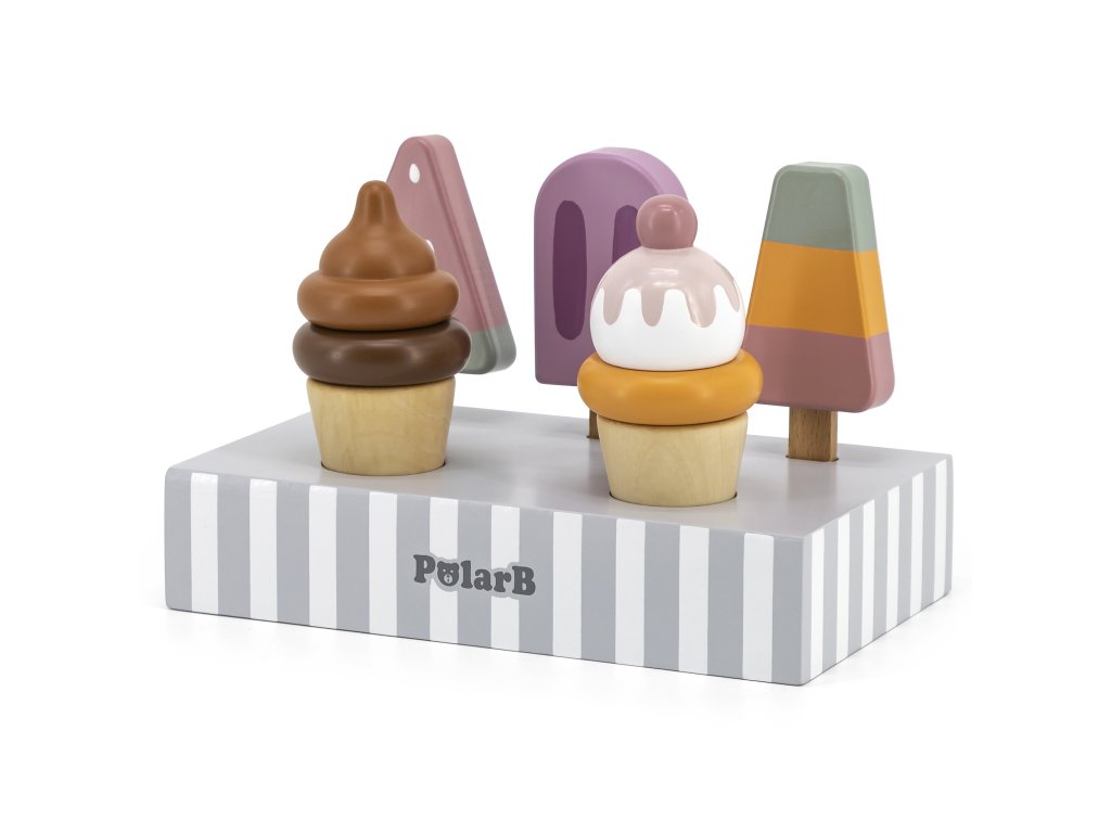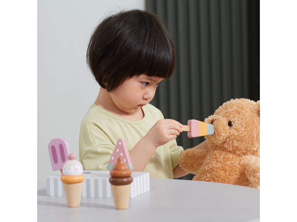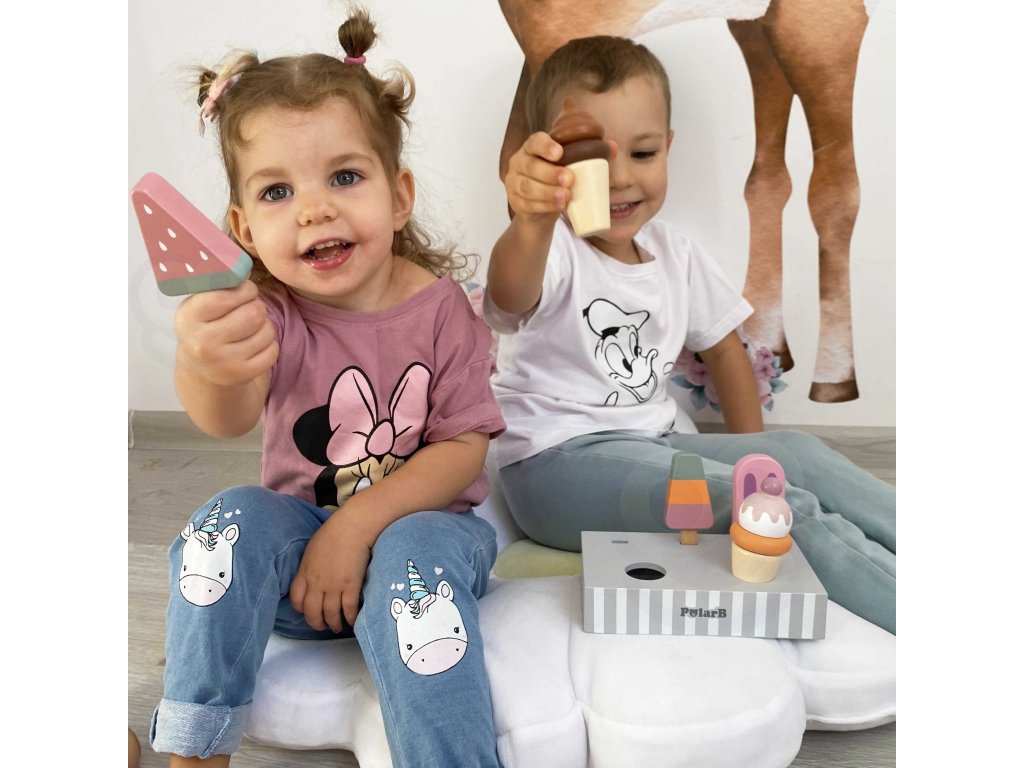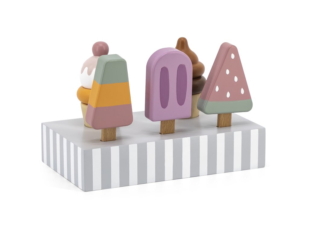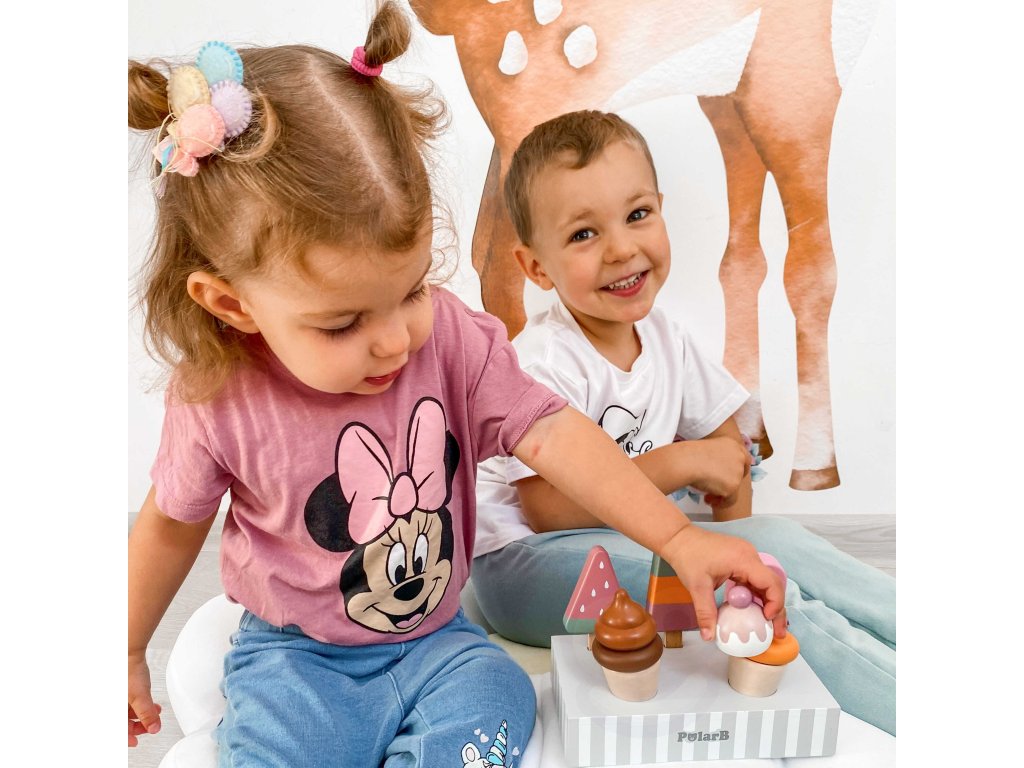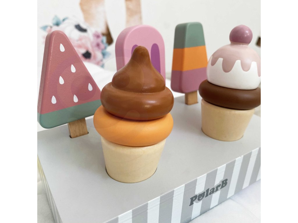 Drevená súprava piatich zmrzlinových pohárov, ktoré sú ideálne na dezert v horúci deň. Zmrzlina v krásnych, chutných farbách vyrobená so starostlivosťou o každý detail. Táto drevená súprava sa bude skvele hodiť na hru na obchod, ako aj ako doplnok k detskému kuchynskému vybaveniu. Skvelá kvalita spracovania, očarujúce farby, praktickosť a funkčnosť. Hra na domček, hra na obchod a napodobňovanie rolí dospelých - kreatívny spôsob vytvárania sociálnych vzťahov a rozvíjania a učenia sa slovnej zásoby.