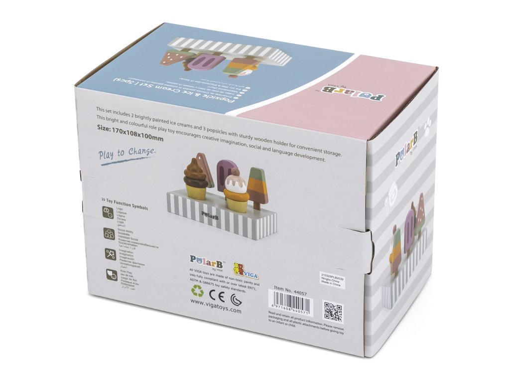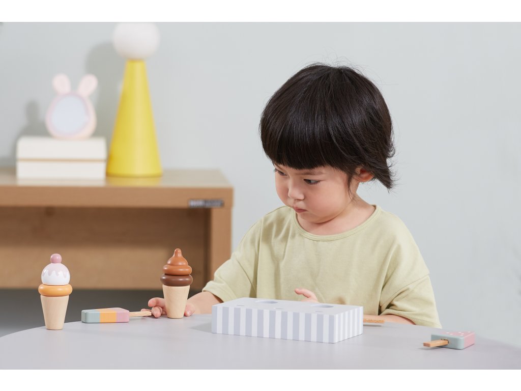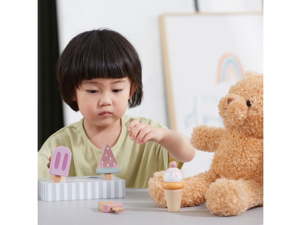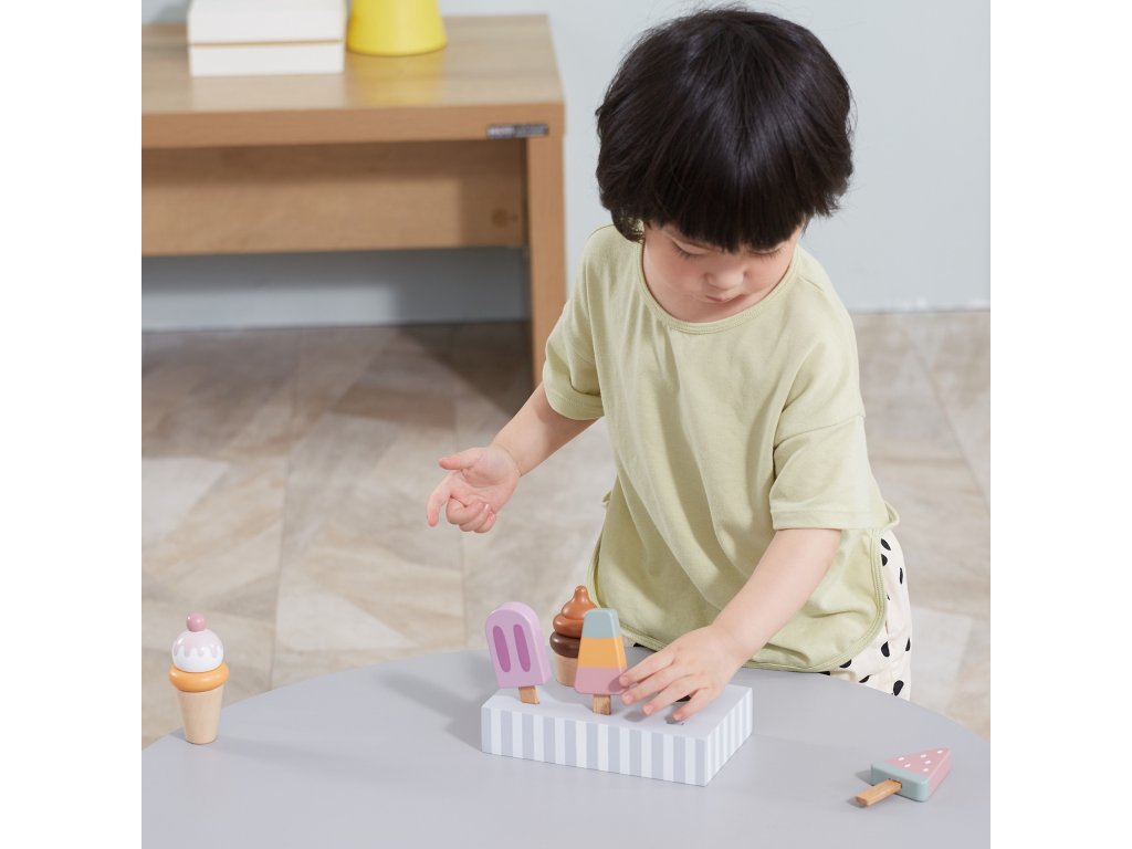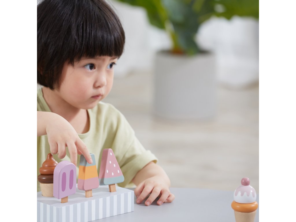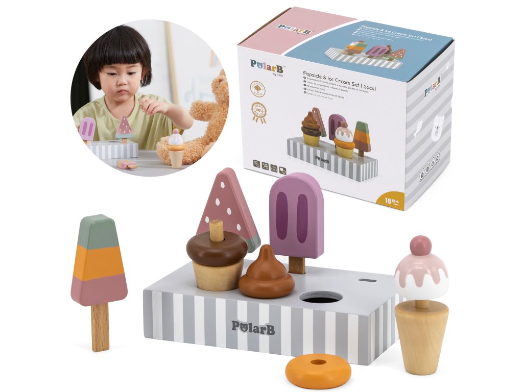 Drevená súprava piatich zmrzlinových pohárov, ktoré sú ideálne na dezert v horúci deň. Zmrzlina v krásnych, chutných farbách vyrobená so starostlivosťou o každý detail. Táto drevená súprava sa bude skvele hodiť na hru na obchod, ako aj ako doplnok k detskému kuchynskému vybaveniu. Skvelá kvalita spracovania, očarujúce farby, praktickosť a funkčnosť. Hra na domček, hra na obchod a napodobňovanie rolí dospelých - kreatívny spôsob vytvárania sociálnych vzťahov a rozvíjania a učenia sa slovnej zásoby.