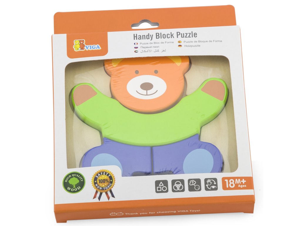 Drevené minipuzzle od renomovanej značky Viga pre deti je ideálny pre domácnosť aj pre materskú školu. Puzzle sa skladá z 4 prvkyktoré spolu tvoria medvedíkna drevenom podstavci sa nachádza dutina, ktorej tvar zodpovedá farebným puzzle.