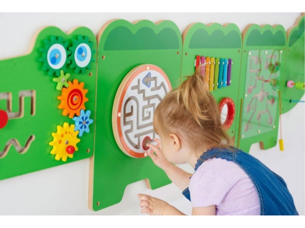 Senzorická edukačná manipulačná doska Viga Krokodíl je ideálna predomov, wmaterská školači už v herňa.
