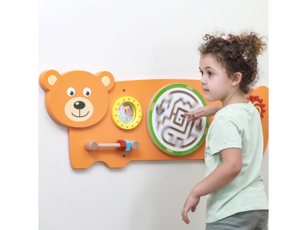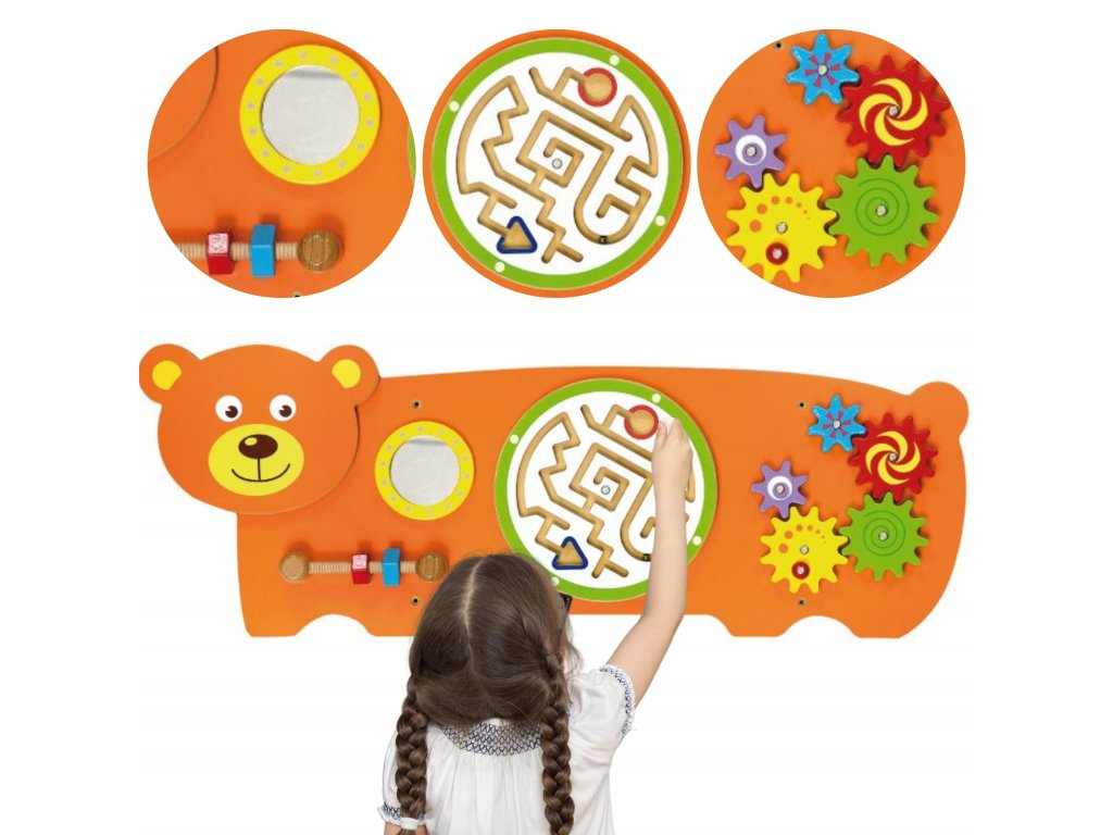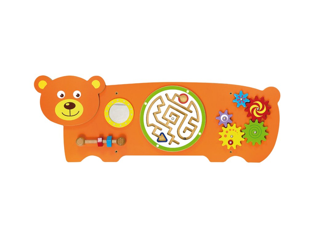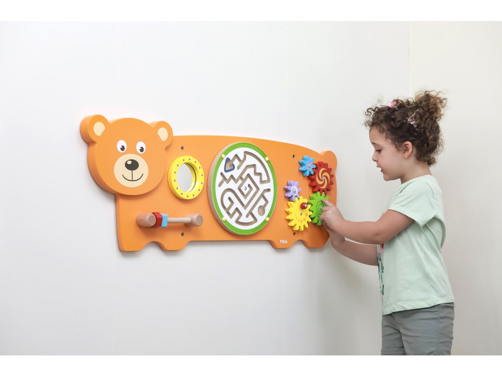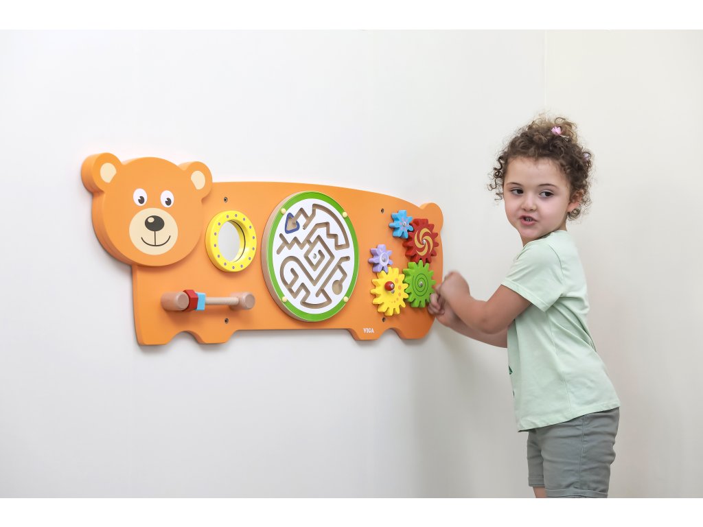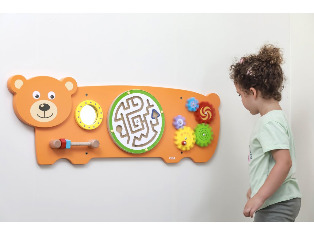 Táto veľká farebná tabuľa v tvare priateľského medveďa od značkyViga, kombinuje hru a učenie, rozvíja zručnosť rúk, koordináciu oko-ruka a zvedavosť pri skúmaní. Prvky ako naprskrutky, bludisko, ozubené kolesá a zrkadlo je mini výzva, ktorá vaše dieťa zaujme na dlhšiu dobu a je zábavná! Tento výrobok je vyrobený z kvalitného dreva, bezpečne natretý a spĺňa normy CE a EN 71. Skvelý spôsob, ako premeniť každodennú hru na rozvoj zručností a pozvať svojho malého objaviteľa do sveta kreatívnej hry už dnes.