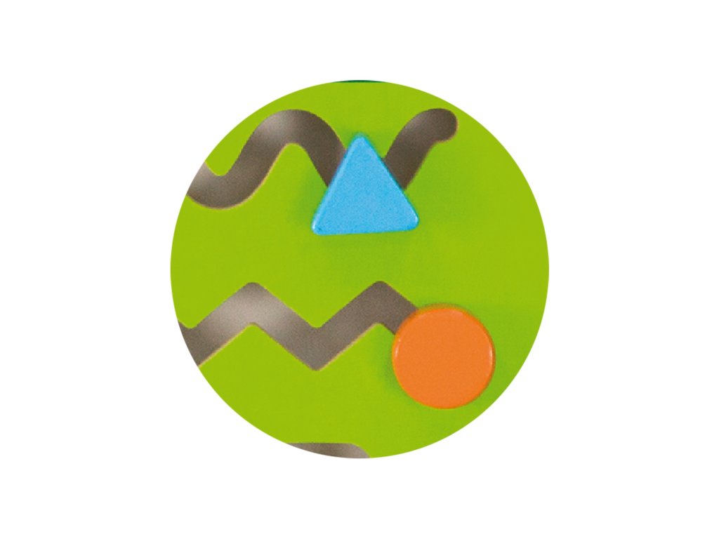 - - Hlava húsenice - má kovovú slučku s drevenými korálkami, ktoré môže dieťa prekladať po bludisku