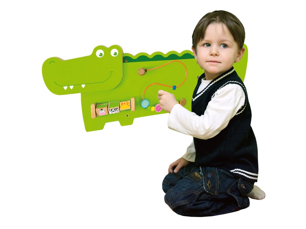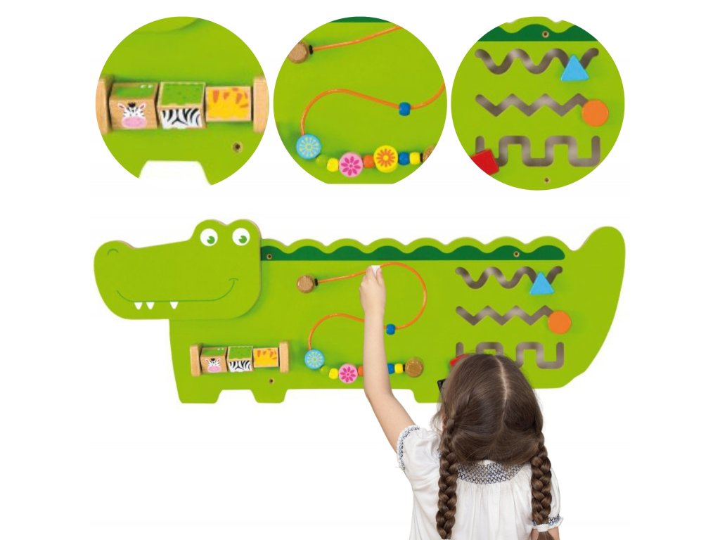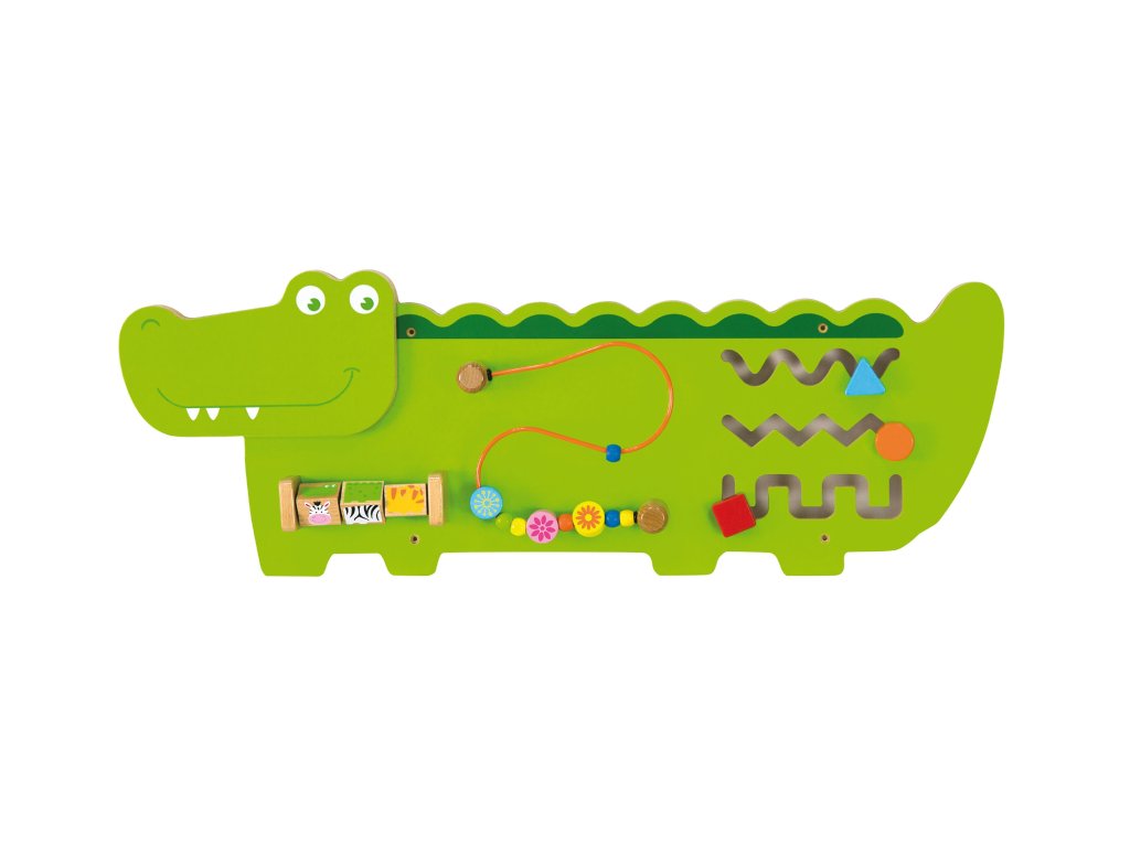 VIGA Vzdelávacia senzorická manipulačná doska Drevený krokodíl FSC Montessori certifikát