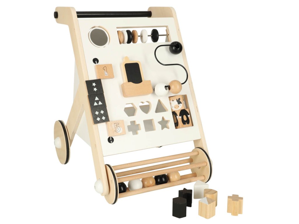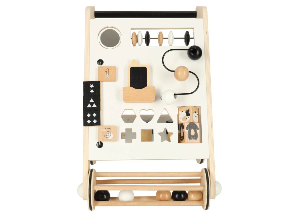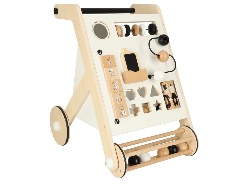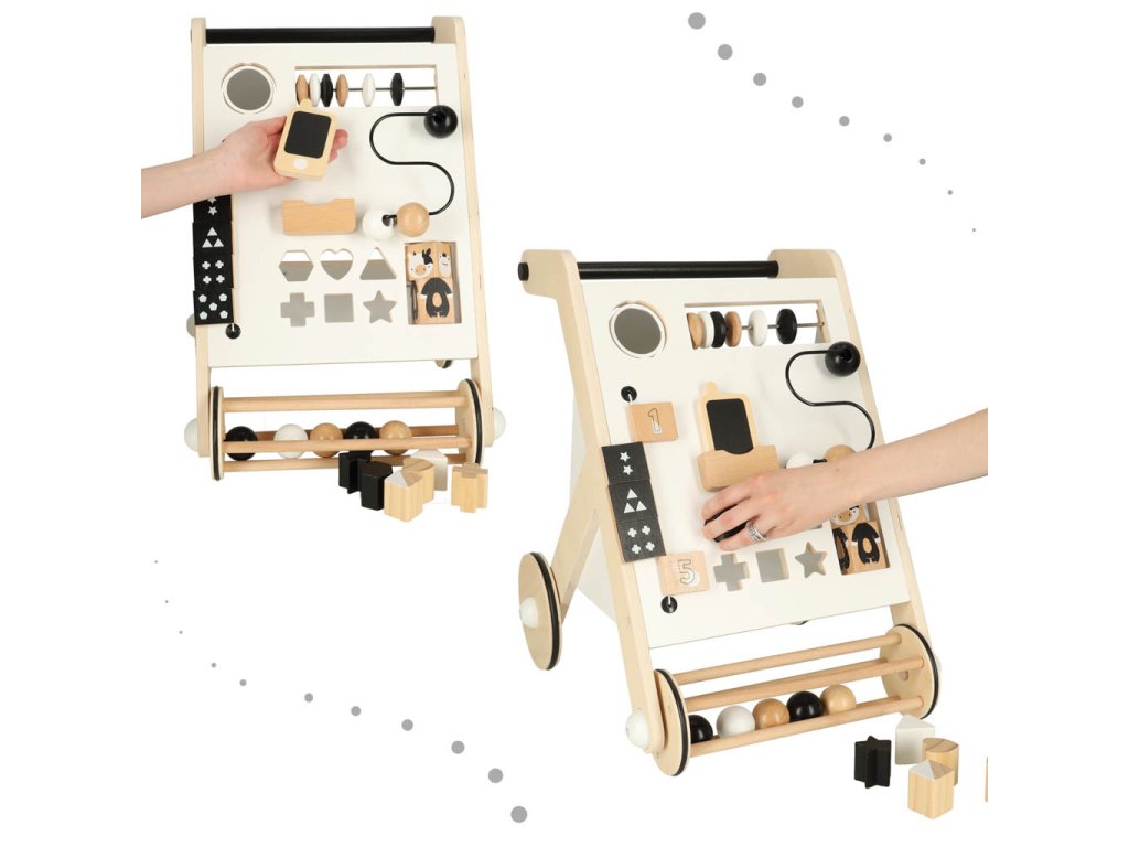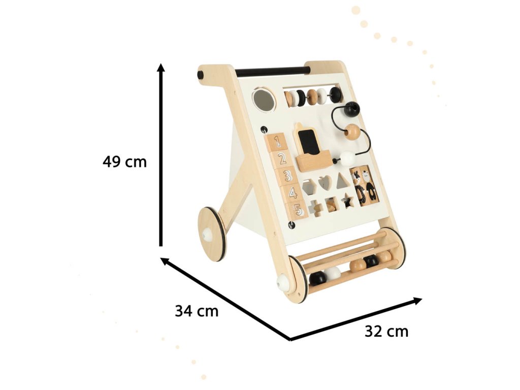 Drevený kočík má zabudované vzdelávacie hračky, ktoré vášmu dieťaťu umožnia zabaviť sa aj vtedy, keď sa mu nechce robiť ďalšie náročné kroky! Vďaka tomu sa kočík stane obľúbenou hračkou vášho dieťatka! Vaše dieťatko si užije veľa zábavy a vy budete mať istotu, že zábava je spojená so starostlivosťou o rozvoj vášho dieťaťa.
