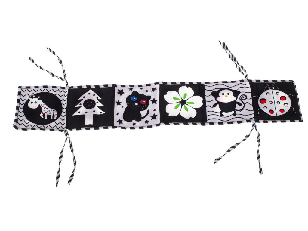 Knižka v tvare harmoniky je ideálna ako ochranná podložka do postieľky. K priečkam ho možno pripevniť pomocou šnúrky.