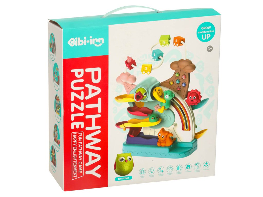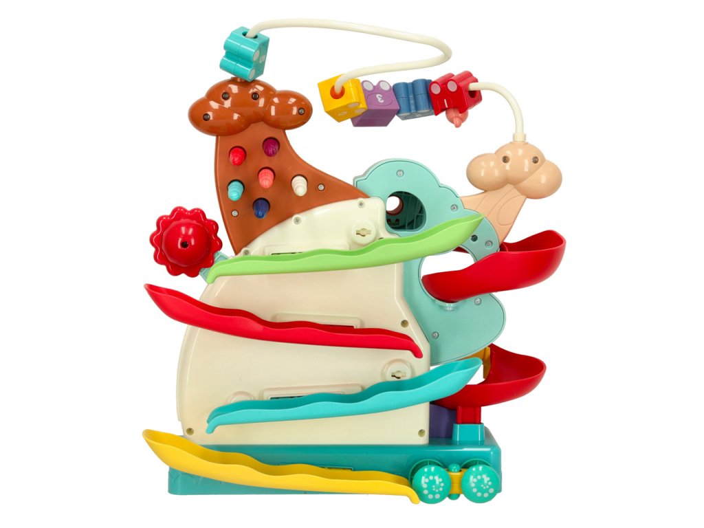 Hračka má nie jednu, ale až dve dráhy, po ktorých sa môžu kotúľať farebné loptičky alebo autíčko. Ďalšou atrakciou sú farebné vagóniky s číslami, ktoré môže vaše dieťa presúvať a otáčať. Obsahuje aj hru "nakŕm vtáčika", ktorá spočíva v zbieraní červíkov a kŕmení vtáčika.