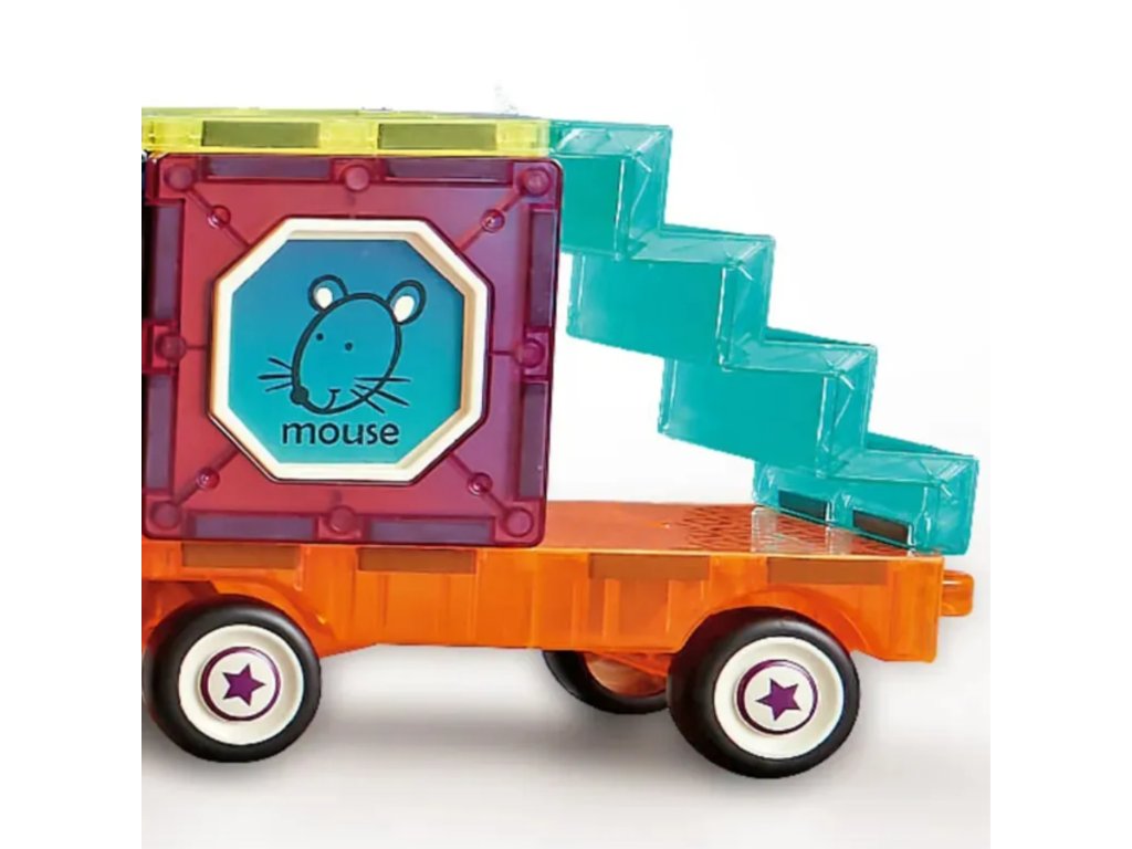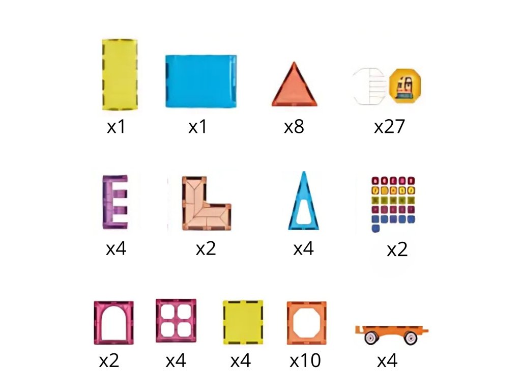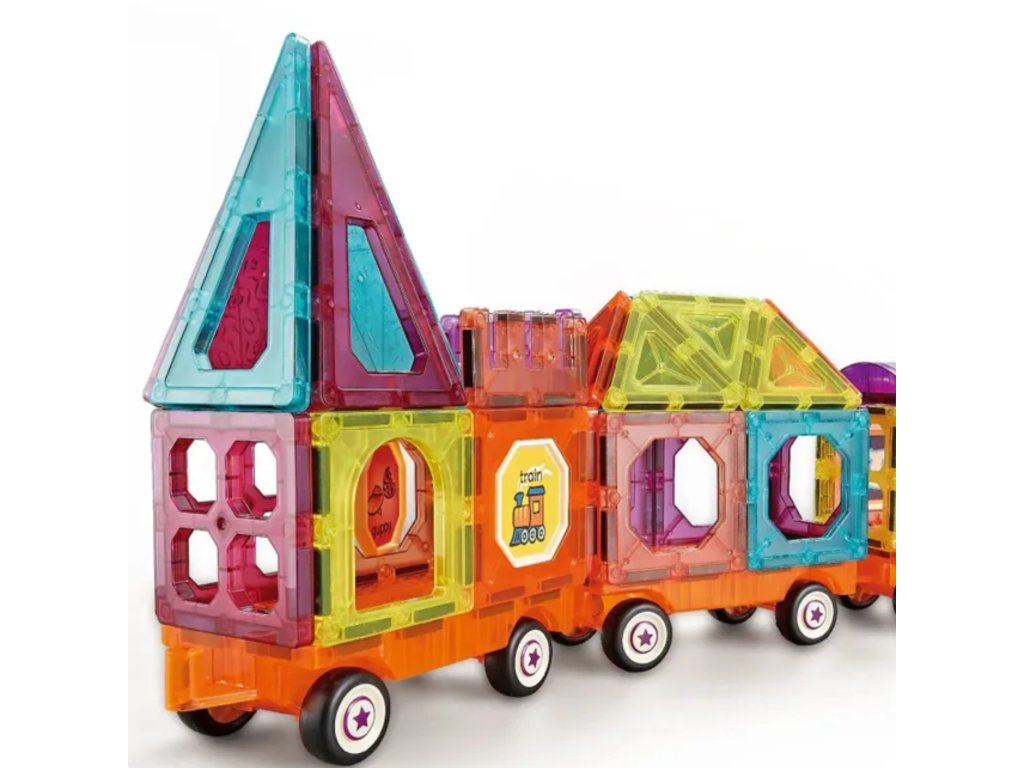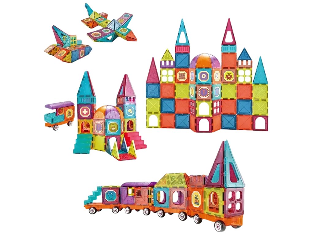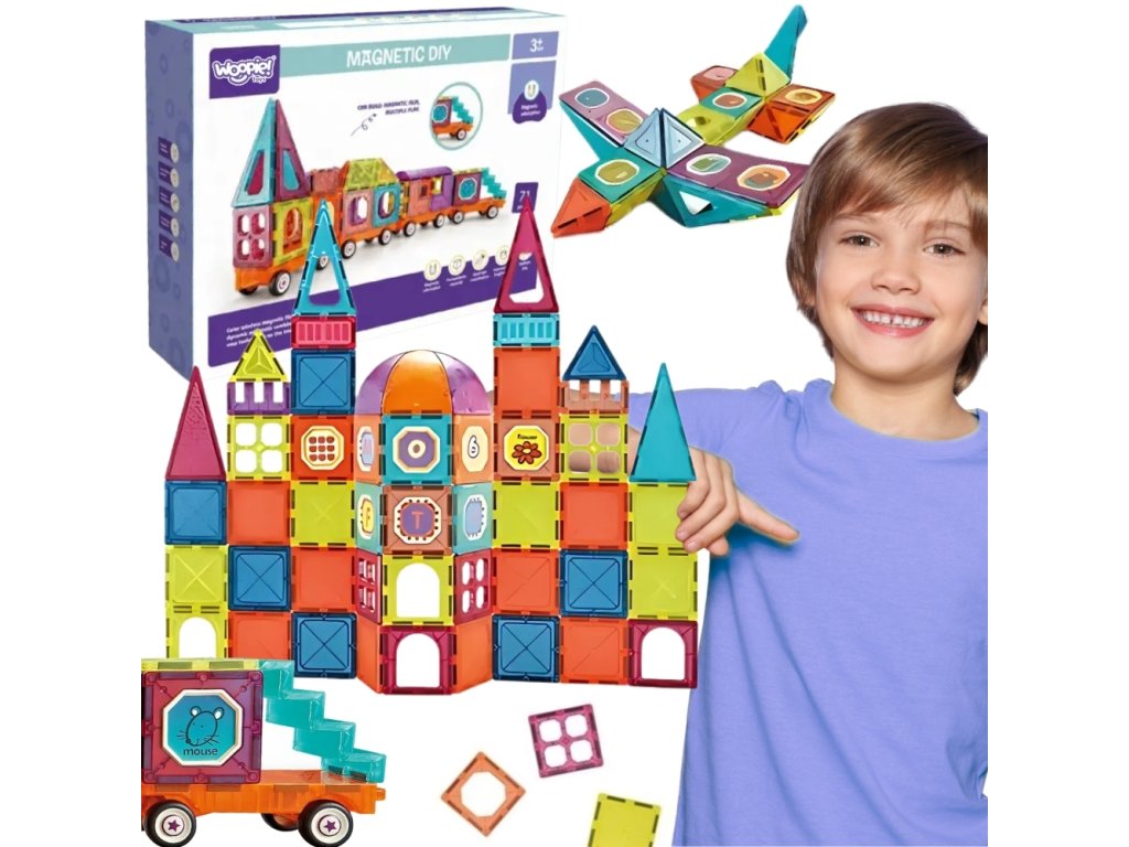 - - Vrátane71 prvkov, vrátane magnetických dlaždíc, plošín s kolieskami a figúrok.