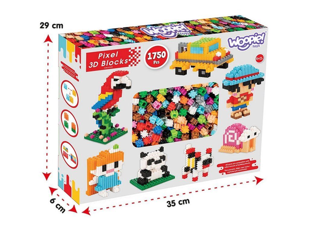 Sada stavebných tehál3D PIXEL od renomovanej značkyWoopie je skutočným zážitkom premalí stavitelia a fanúšikovia dizajnu. S až1750 prvkov, môžu deti preniesť svoje predstavy z fantázie do reality vytváraním neuveriteľne detailných pixelartových figúrok. Nie je to len hračka, je to tréning trpezlivosti, precíznosti a neobmedzenej kreativity!