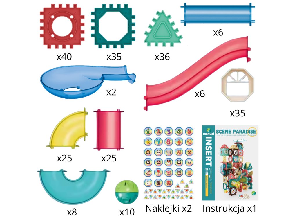 - - Celkovo 228 rôznych magnetických stavebných blokov a komponentov guľôčkovej dráhy