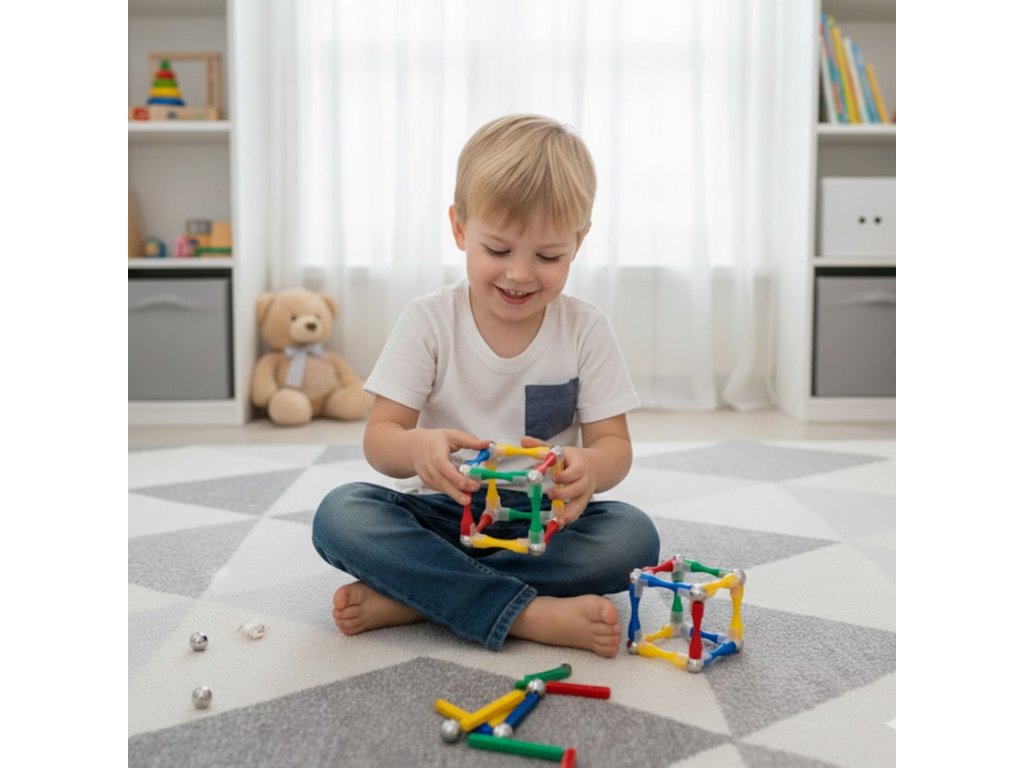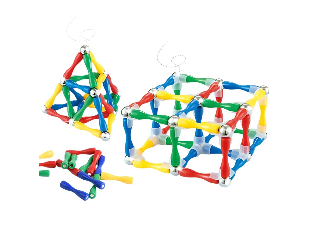 - - 128 farebných prvkov: tyče, gule a magnety