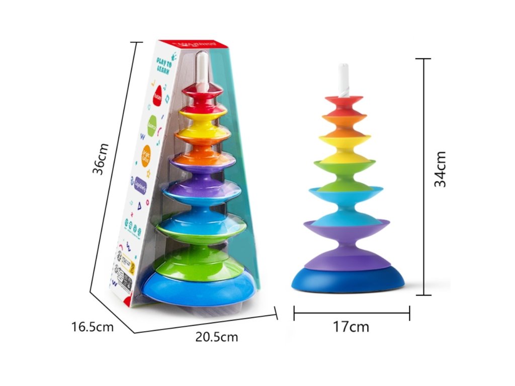 Každý zo 7 valcov sa líši veľkosťou a farbou, čo podnecuje batoľa k preskúmavaniu, porovnávaniu a usporiadaniu
