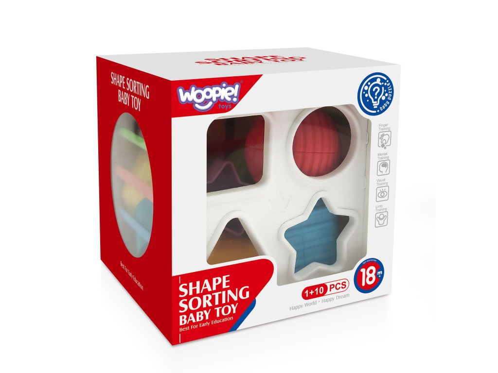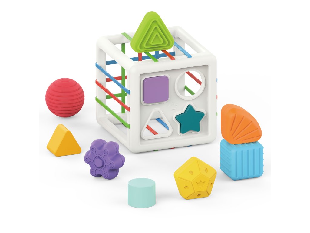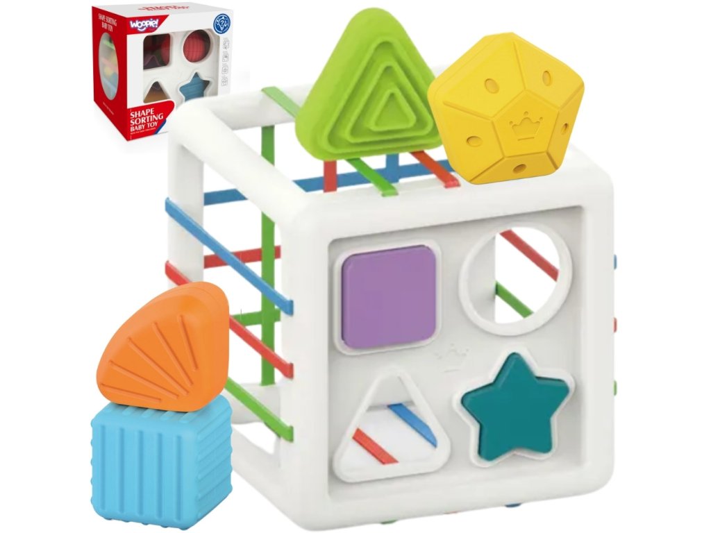 WOOPIE BABY Flexibilná senzorická kocka Baby Sorter Farebné tvary 11 ks