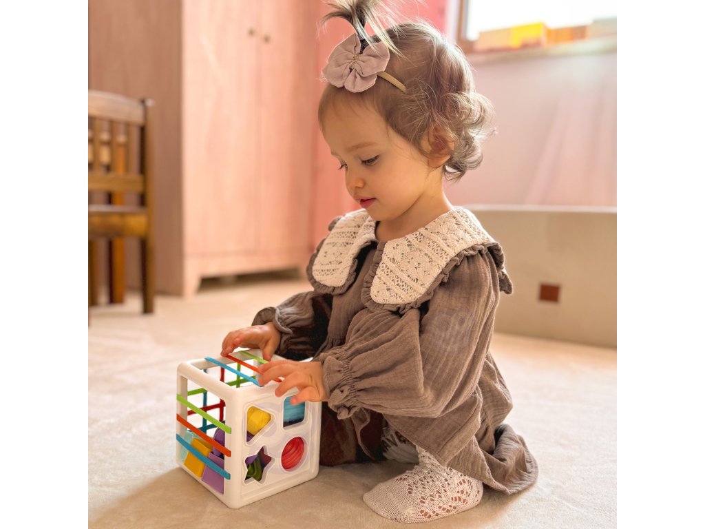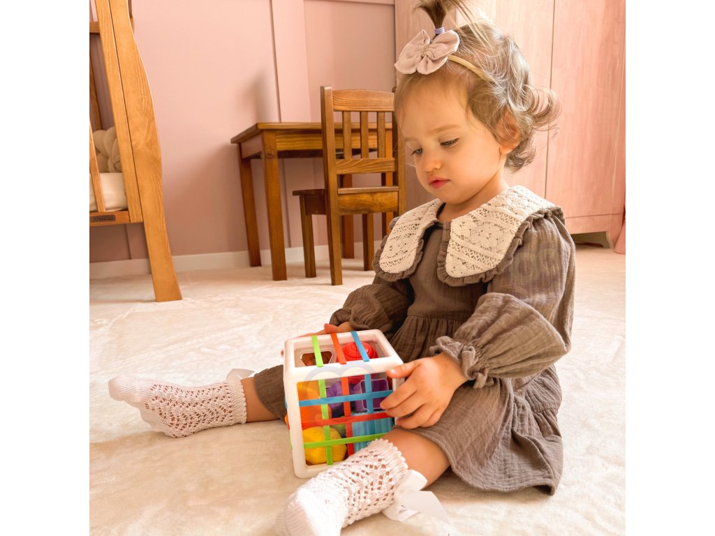 Flexibilná senzorická kocka od značkyWOOPIE podporí rozvoj vášho dieťaťa! Detská hra pozostáva z vkladania a vyberania prvkov z náučnej kocky, navyše jedna stena je klasická triedička so zodpovedajúcimi špecifickýmičísla geometrické. Dieťa pri hrerozvíja zmysly azlepšuje manuálne zručnosti. Každý z bloky upozornenia je to, čo zvyšujezvedavosť dieťa natoľko, aby ich chcelo vytiahnuť a vrátiť späť do triedičky. Hračka sa vyvíjasenzorikaimyseľ dieťa,ako aj podporuje experimentovanie. Okrem toho, keď dieťa vyrastie, bloky sa môžu použiť naučenie sa farieb itvary.Základné hračka pre vaše dieťa v ranom štádiu života!