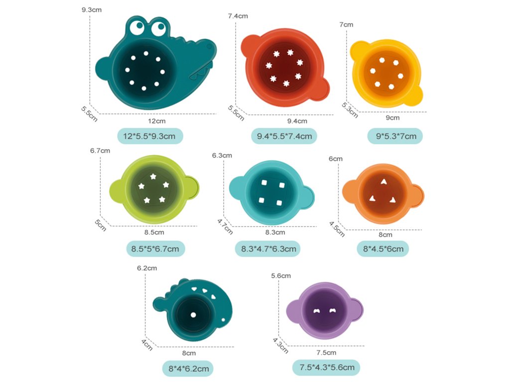 Súprava hračiek do vodyod značkyWOOPIEje skvelým doplnkom detského kúpeľa. Súprava obsahuje 8 prenosových pohárov. Kontajnery sa dajú zostaviť vjeden, spojiť vedľa seba do jedného veľkéhochvost,nastavené vveža a majú na dne rôzne otvory - takžeje možné uskutočniť celý rad rôznych zážitkov z kúpania. Hračka rozvíja zmysly vášho dieťaťa!Otvory v šálkach majú rôzne geometrické tvary, takže sa dajú použiť na učenie tvarov. Súprava vám nielen spríjemní čas kúpania, ale ajrozvíja manuálne zručnosti v batoľati a bude tiež rozvíjaťvnímanie okolitého svetaa predovšetkým umožní dieťaťu sústrediť sa na hru počas umývania.