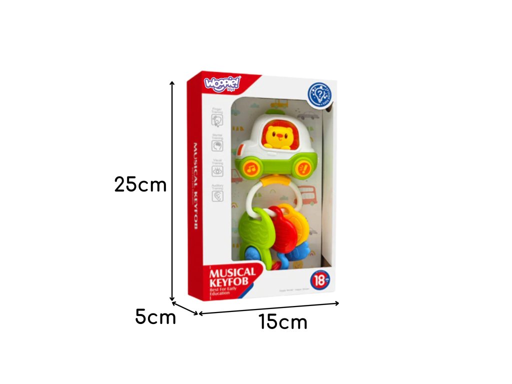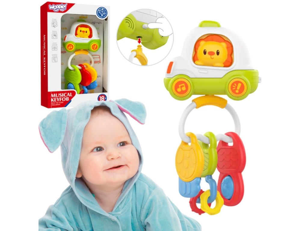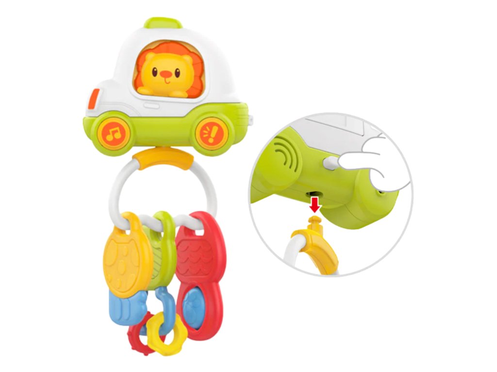 Farebné a interaktívnehudobná hračka Pilotné auto s kľúčmi je ideálnou voľbou pre každé batoľa! Bola navrhnutá tak, aby podporovala hrumotorický, zmyslový a kognitívny vývoj dieťa od útleho veku. Rozkošný lev v autíčku priťahuje pozornosť dieťaťa a podporuje interakciu - stláčaním tlačidiel batoľa aktivujeveselé melódie, realistické zvuky auto a svetelné efekty, ktoré stimulujú zmysly a poskytujú viaczmyslový zážitok. Hračka márôzne prvky ako sú mäkké hryzátko, otočné tlačidlá, prívesok a tlačidlá, ktoré sa dajú otáčať a dotýkať, aby sa podporilo učenie sa uchopiť atréning manuálnych zručností. Je to ideálny spoločník na každodenné hranie doma, na cestách alebo ako prívesok na kočík či autosedačku. Hračka bola vyrobená zvysokokvalitné, bezpečné a netoxické materiály,vďaka zaobleným tvarom a odolnej konštrukcii je vhodný aj pre tie najenergickejšie batoľatá. Mäkká textúra hryzátka poskytuje úľavu počas prerezávania zúbkov a príjemné zvuky nie sú príliš hlasné, takže hra zostáva pohodlná aj pre rodičov. Vďaka kompaktným rozmerom hračka dokonale padne do malých detských rúk a môže ho sprevádzať všade - na cestách, na prechádzke alebo pri hre doma.