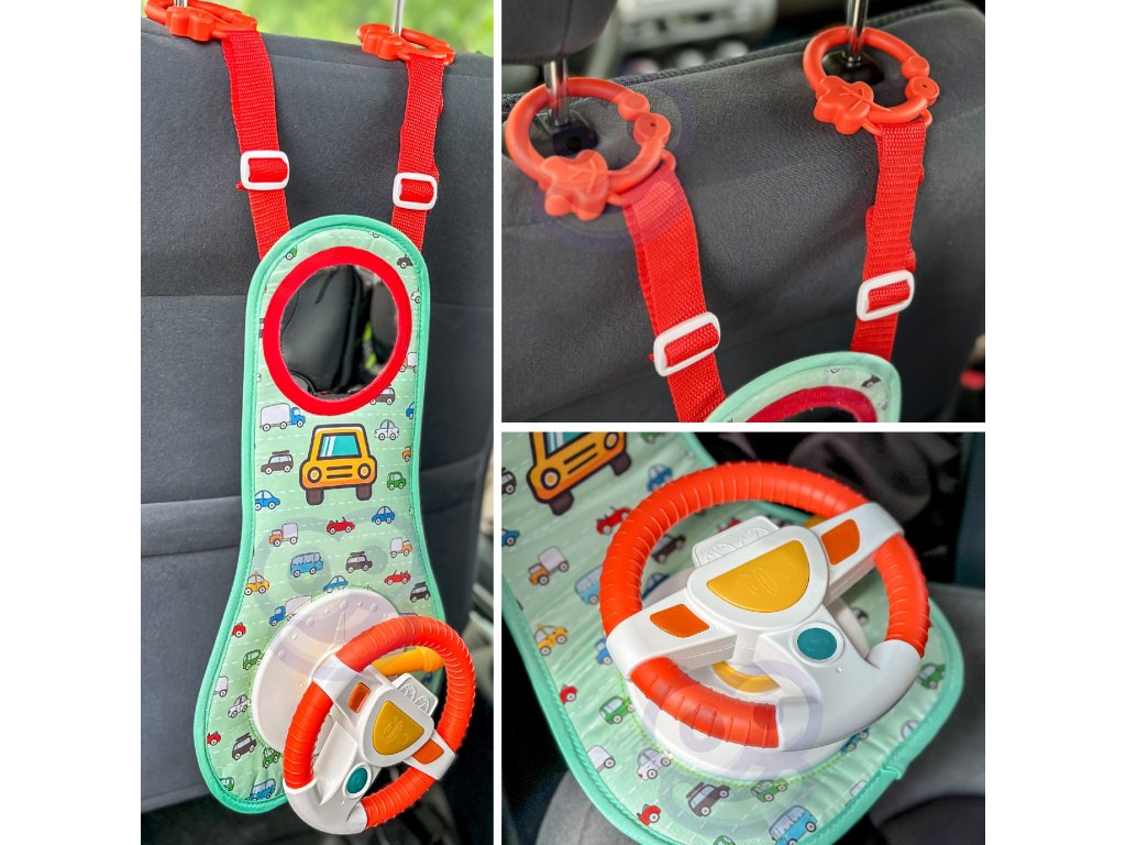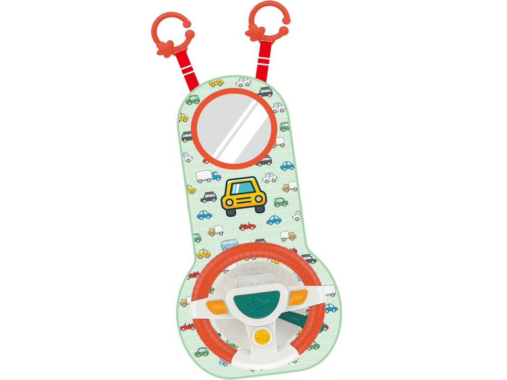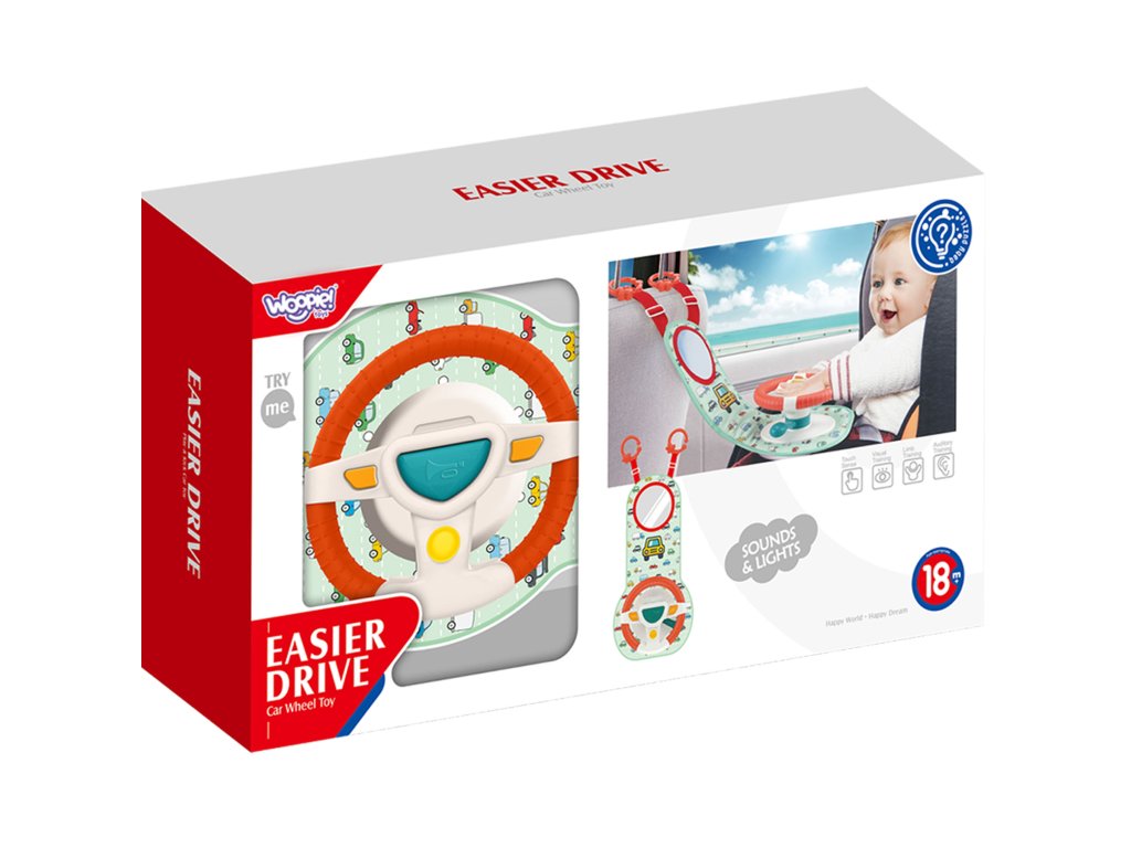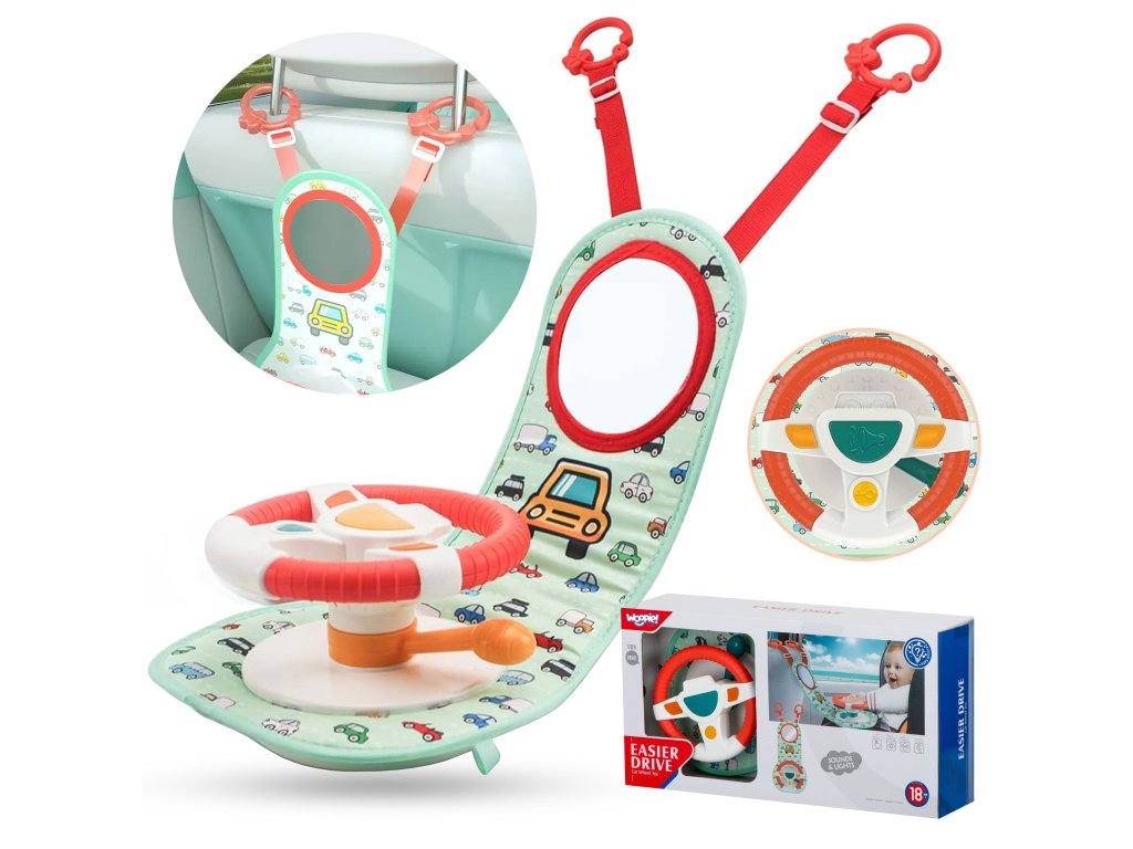 Interaktívny volant do auta od značkyWOOPIE poskytne vášmu dieťaťu nekonečnú zábavu počas dlhých ciest. Dieťa môže hrou napodobňovať správanie rodičaúloha vodiča. Dieťa môže používaťroh,smerovky,kľúč naštartovať motor a pozrieť sa do plastovéhozrkadlo. Všetky prvky volantu vydávajúzvuky a svetládodáva hre šarm. Deti rady napodobňujú dospelých a táto hračka im to umožňujebezpečné a kontrolovaným spôsobom. Všetky komponenty hračky súpevne stanovenénie sú tu žiadne ostré hrany a riadidlá sa dajú ľahko pripevniť k opierke hlavy predného sedadla.