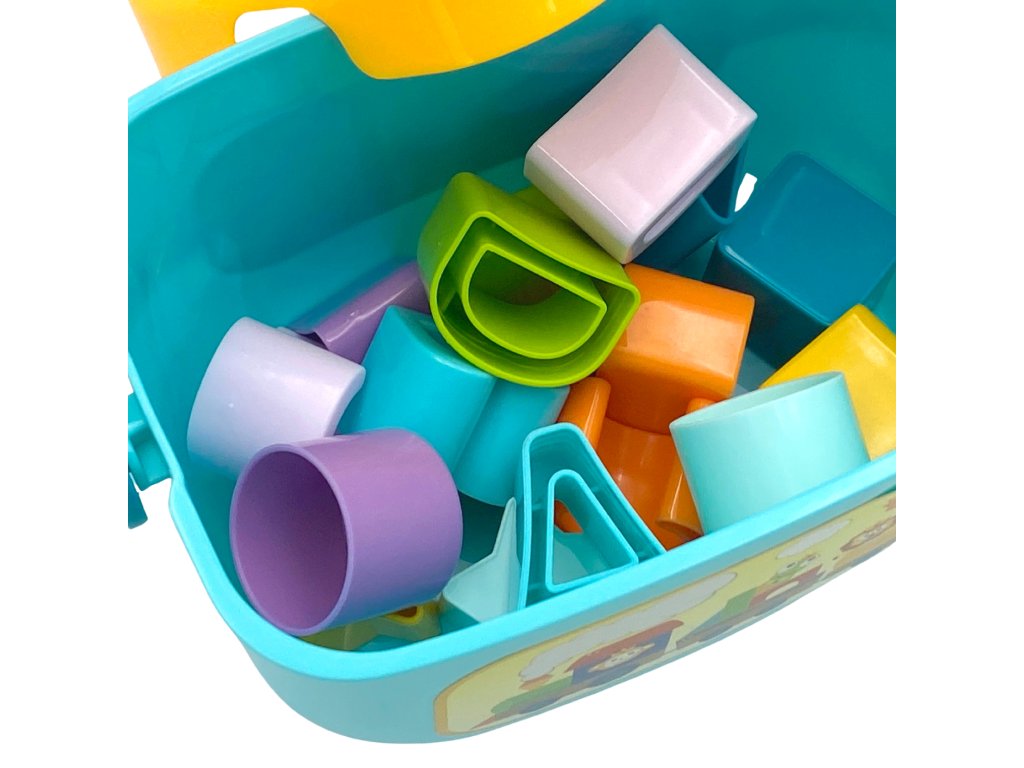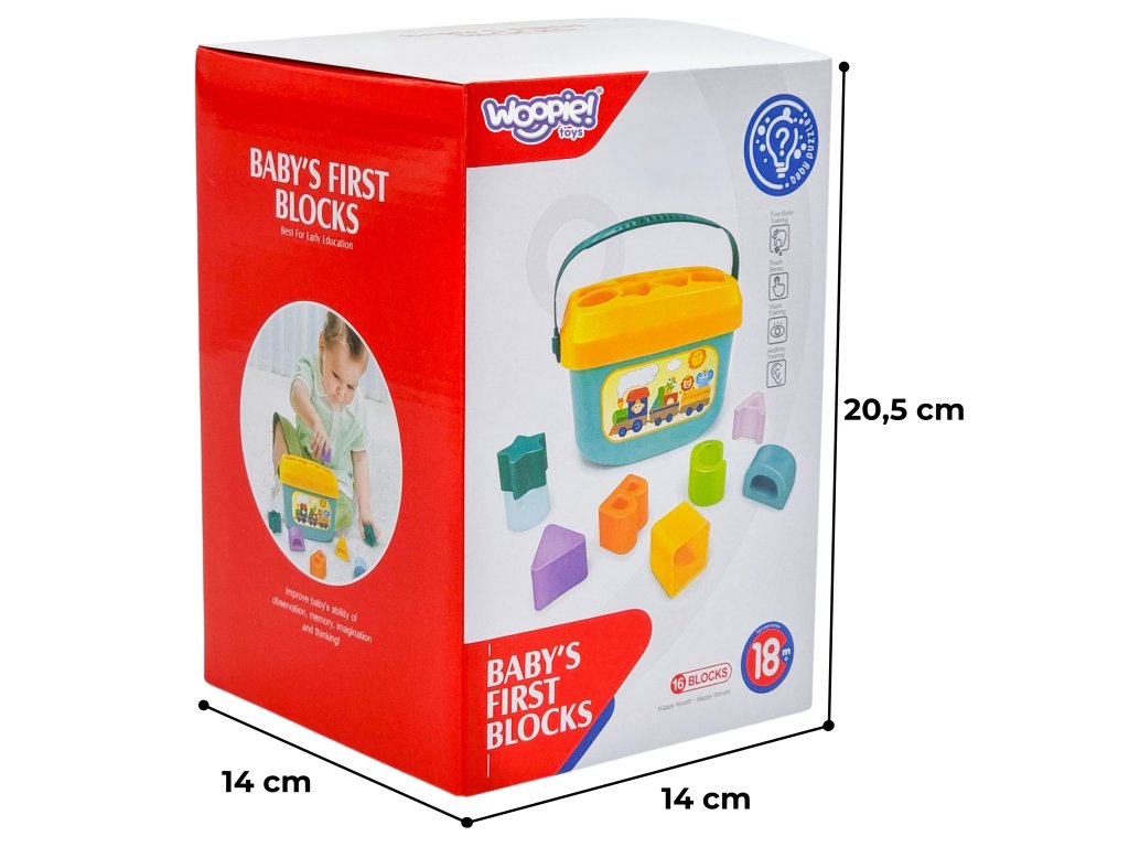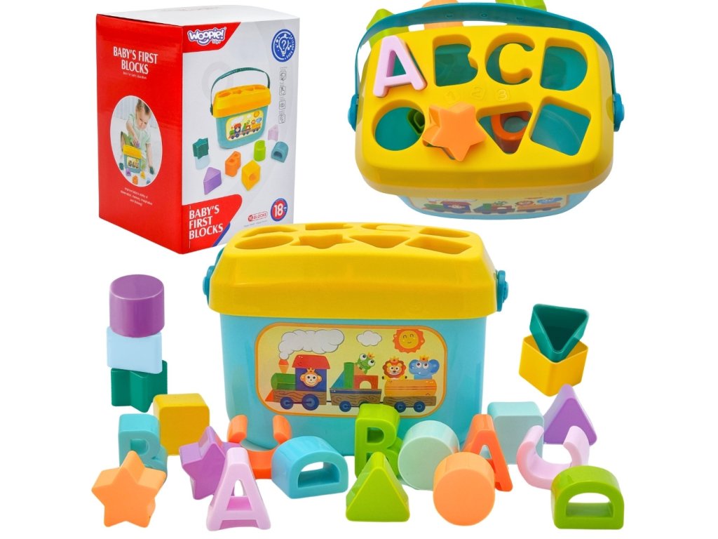 Vzdelávací triedič - vedro na učenie s kockami na výučbu tvarov a čísel odWOOPIE Baby, je skvelá hračka, ktorá spája hru s učením prostredníctvom aktivity a experimentovania s rôznymi prvkami. Farebné bloky a tvary podnecujú dieťa, aby ich priraďovalo k správnym otvorom, čo podporujevývoj manuálu ilogické myslenie od útleho veku. Vďaka možnosti používať kocky na výučbu abecedy, čísel a farieb je hra ešte zaujímavejšia a kreatívnejšia. Funkciakufor/triedič umožňuje jednoduché uskladnenie a usporiadanie dielikov po hre, čo je praktické pre rodiča. Je to ideálna vzdelávacia hračka, ktorá učí hrou a podporuje všestranný rozvoj dieťaťa približne od 18 mesiacov.