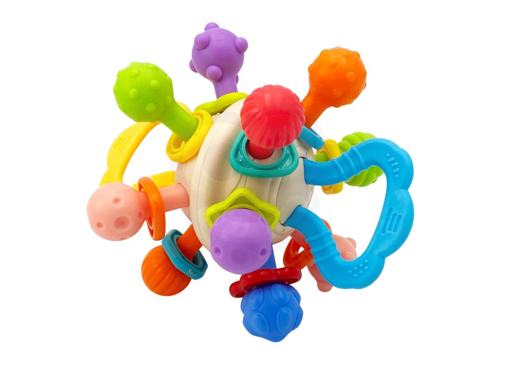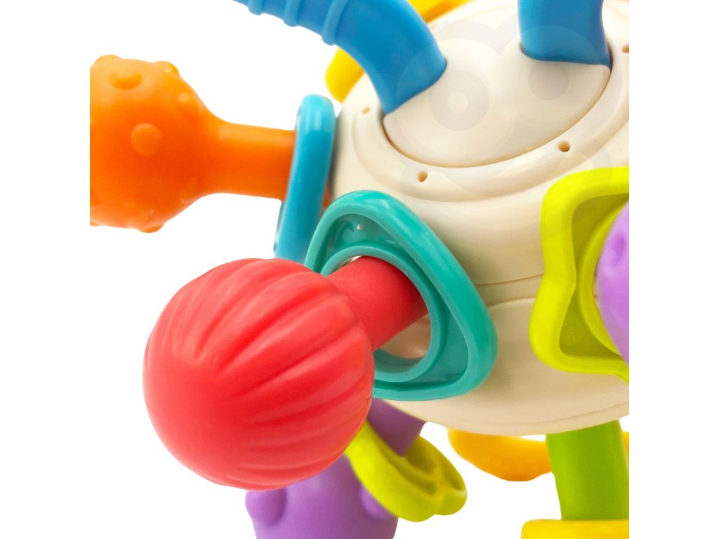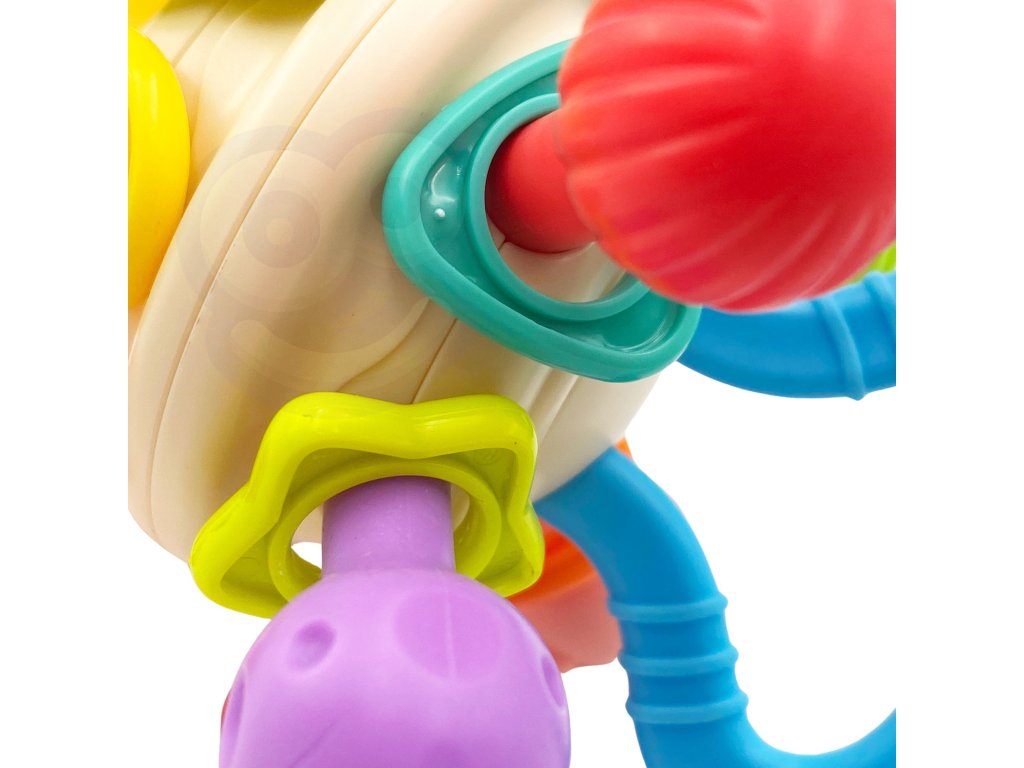Farebná hrkálka v tvare gule od značkyWOOPIE je ideálna hračka pre najmenších, plná malých korálok a navrhnutá ss ohľadom na dojčatá. Tvar a veľkosť boli prispôsobené schopnostiam a potrebám detí a každý zkruhy sa otáčajúa vydáva charakteristický zvuk.Ráčny sú vyrobené z gumyktorý poskytujepohodlie.