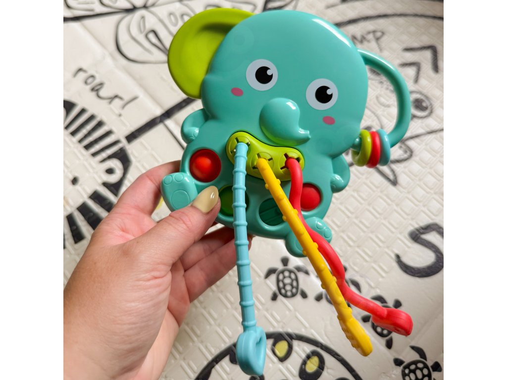 Pozdravte krásnu tyrkysovú farbuSlon od značkyWoopie! - dokonalý spoločník na ceste vášho dieťatka fascinujúcim svetom zmyslov! Tentoinovatívna hračka Montessori, určené pre najmladších bádateľov (od 18 rokov), je skutočným pokladom zmyslových podnetov.Roztomilý slon podporuje dotýkanie, ťahanie, posúvanie a hryzenie,podpora motorického vývoja,koordinácia rúk a očí azvedavosť o svete. Farebné struny,mäkké žuvačky a pohyblivými prvkami bude každá chvíľa strávená so Sloníkom plná radosti a nových objavov. Doprajte svojmu dieťaťu ten najlepší začiatok vzdelávania hrou!